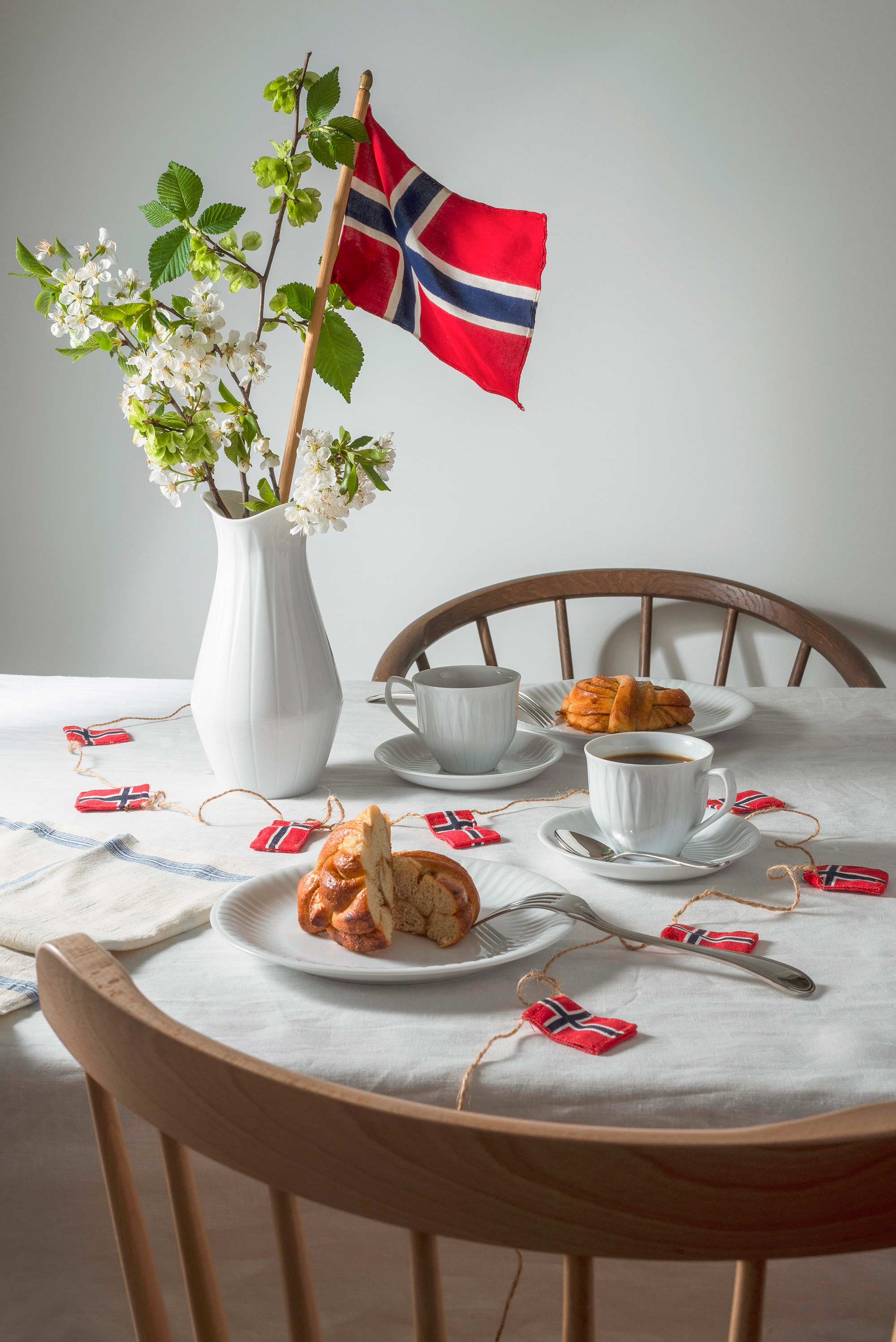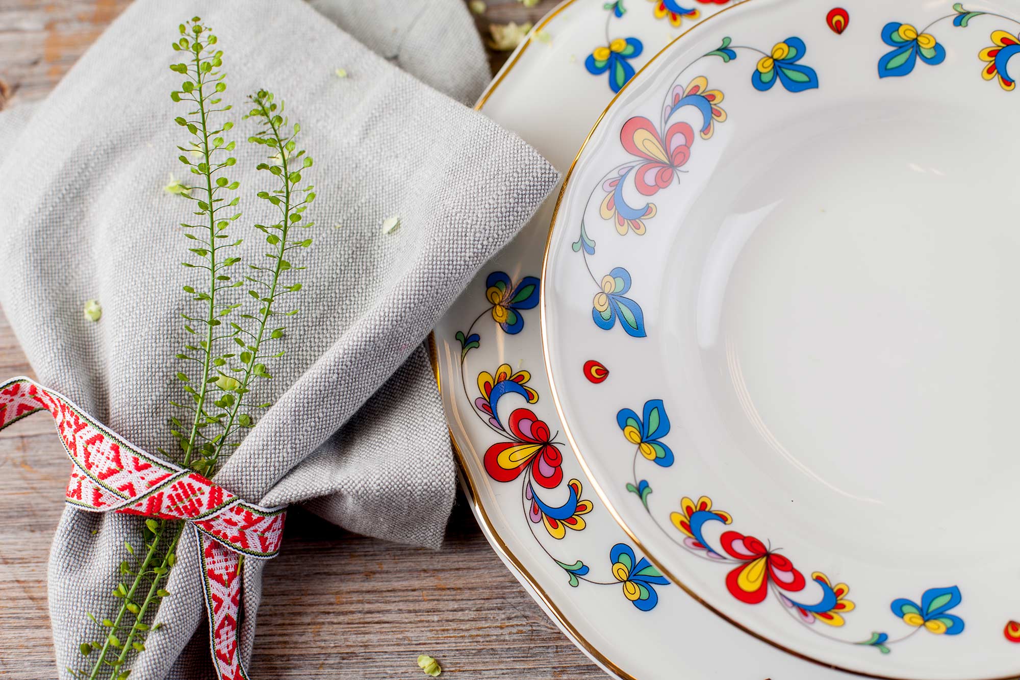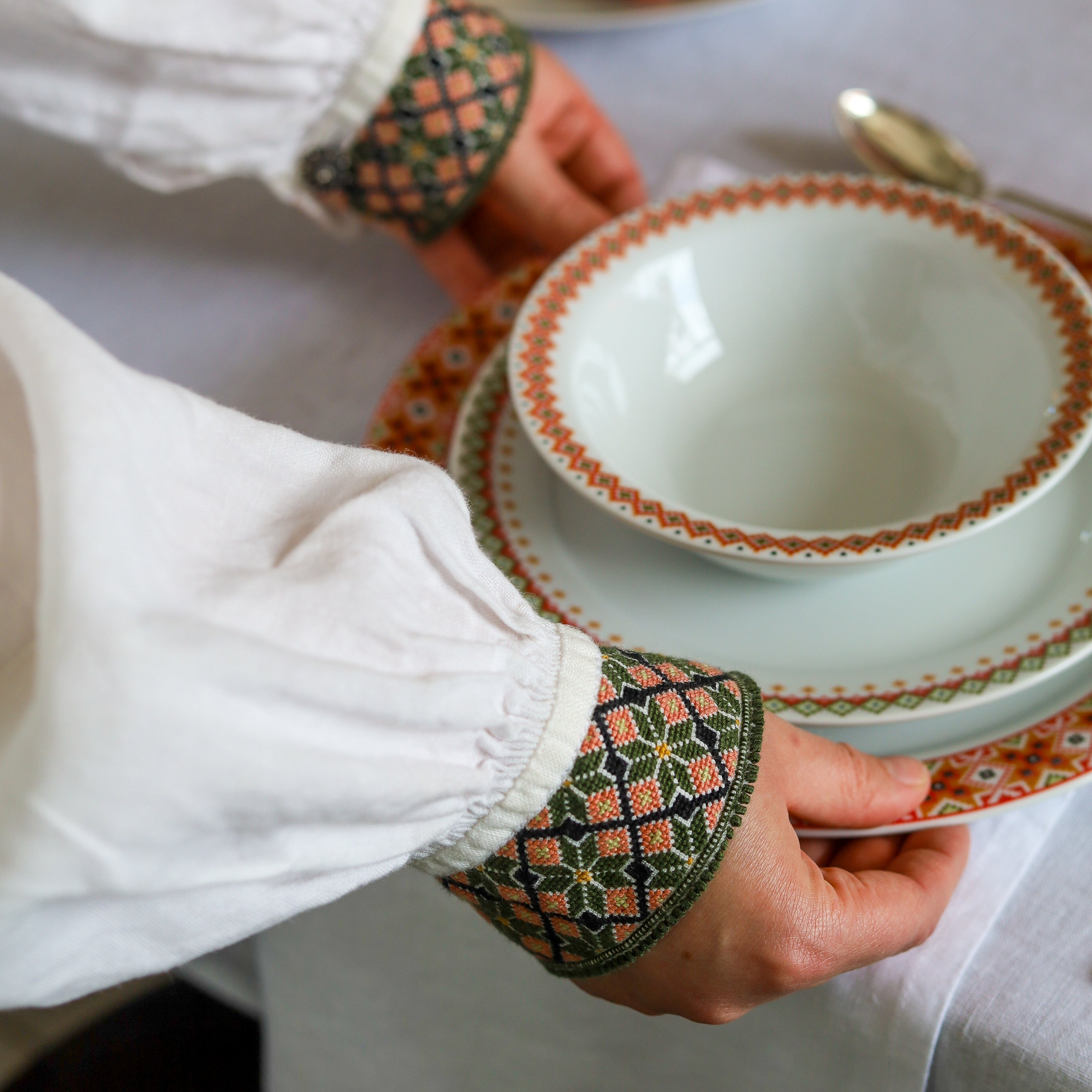 Dekk bordet med vakkert servise og tilbehør.