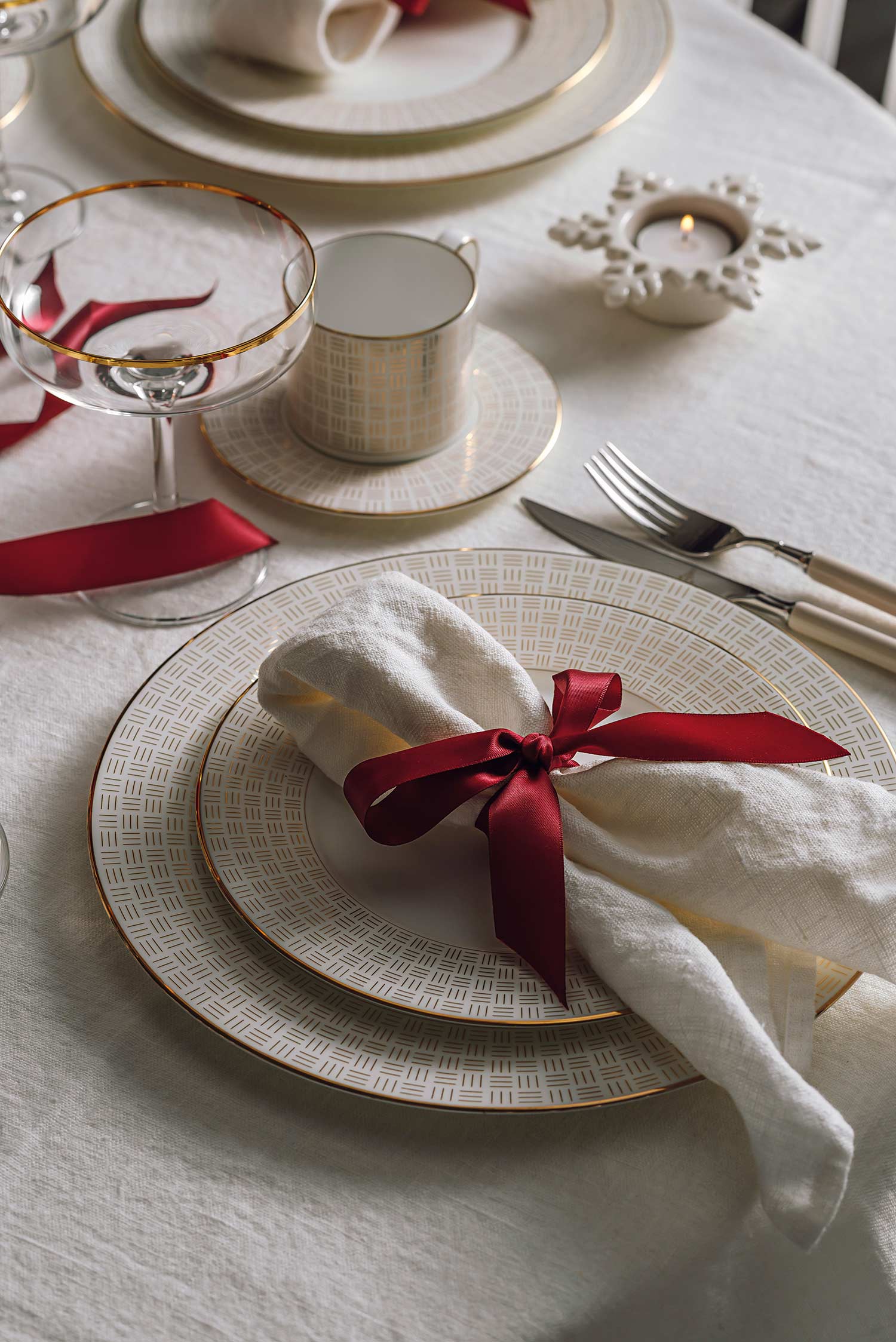 Kombinerer det ikoniske håndmalte stråmønsteret, med den moderne bølgeformen for å skape et servise som forener tradisjon med nyskapende design.