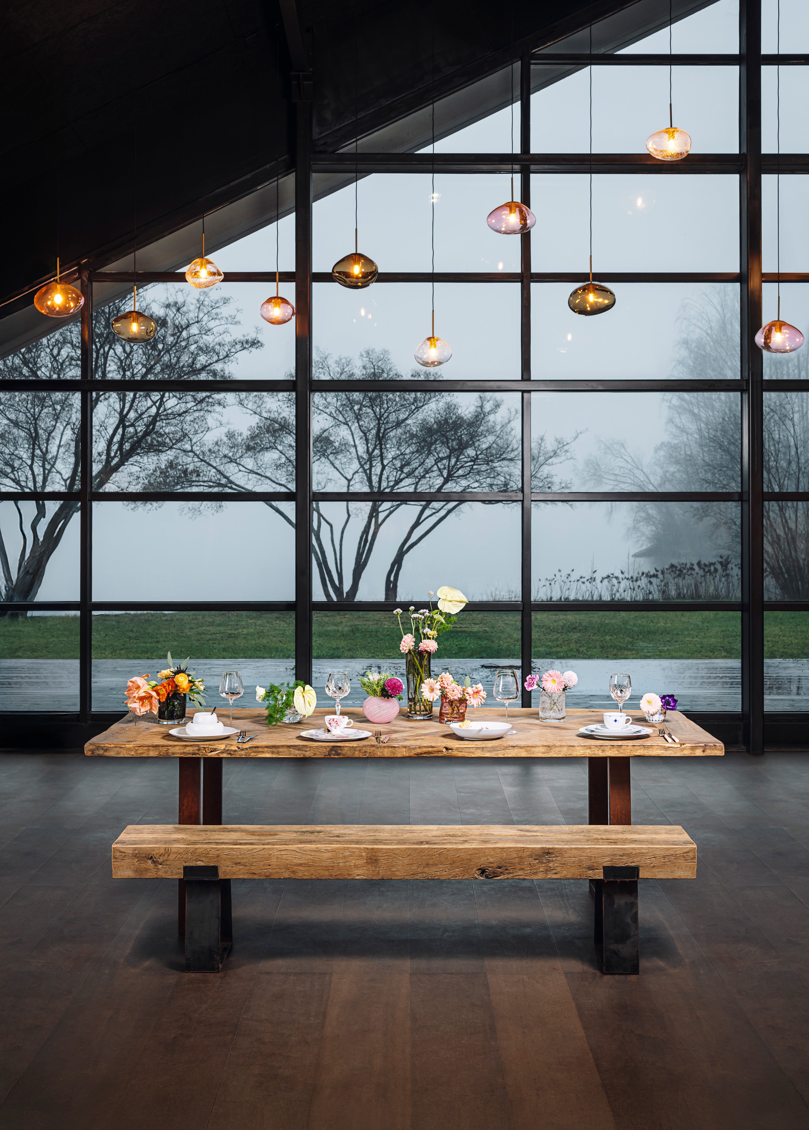 Lunsj og middagsbord dekket med serien Natur