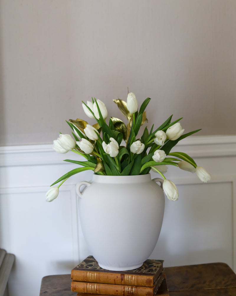 The Cleo vase, standing at 26 cm, features an elegant shape and a soft, light beige color with a beautifully polished surface. It’s perfect for adding a refined touch to your home, whether displayed alone or filled with flowers, twigs, or dried grasses. Ideal for the coffee table, a shelf, or a windowsill.