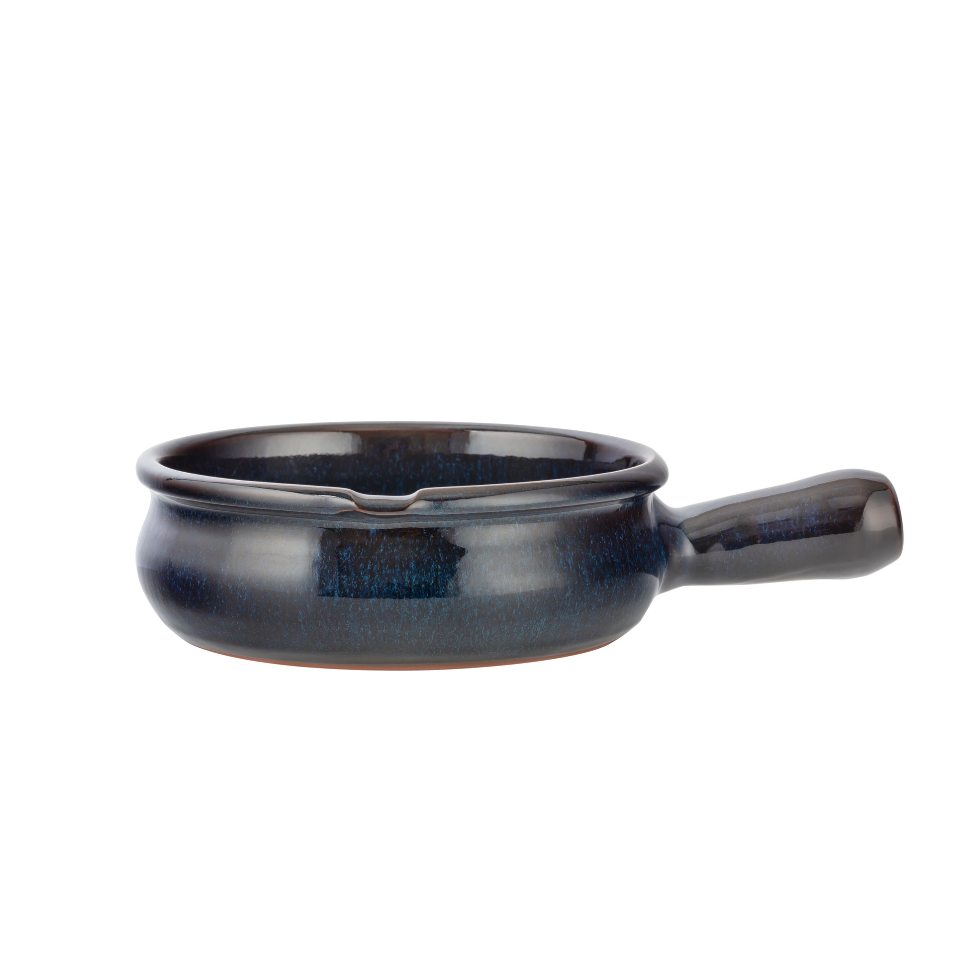 20 cm dish with handle in Noche from the Terra series by Porsgrunds Porselænsfabrik. The deep, dark glaze offers an elegant and exclusive look, perfect for both everyday meals and special occasions. Ideal for serving hot dishes, gratins, roasted vegetables, or shared plates.