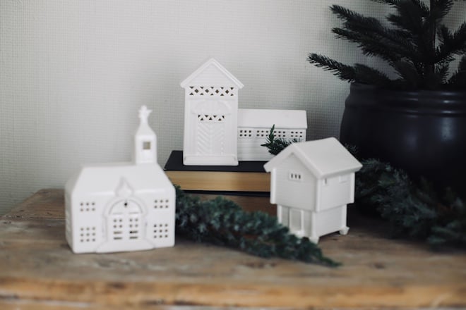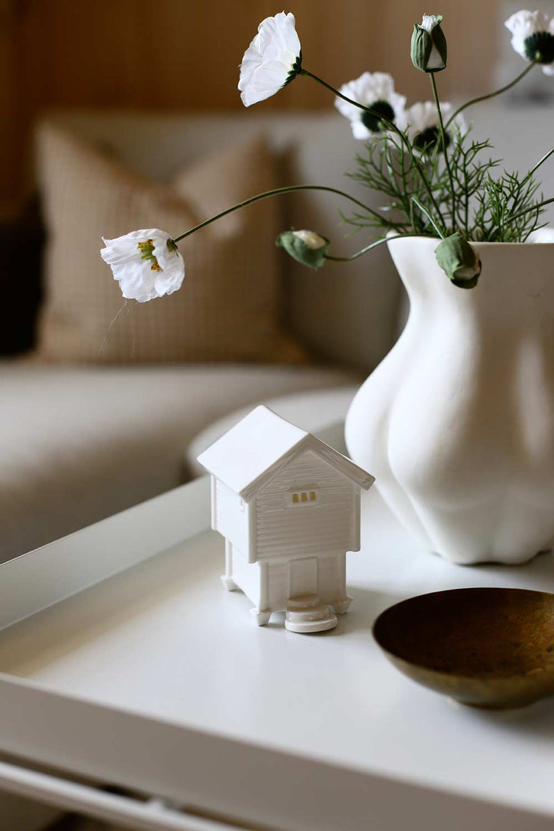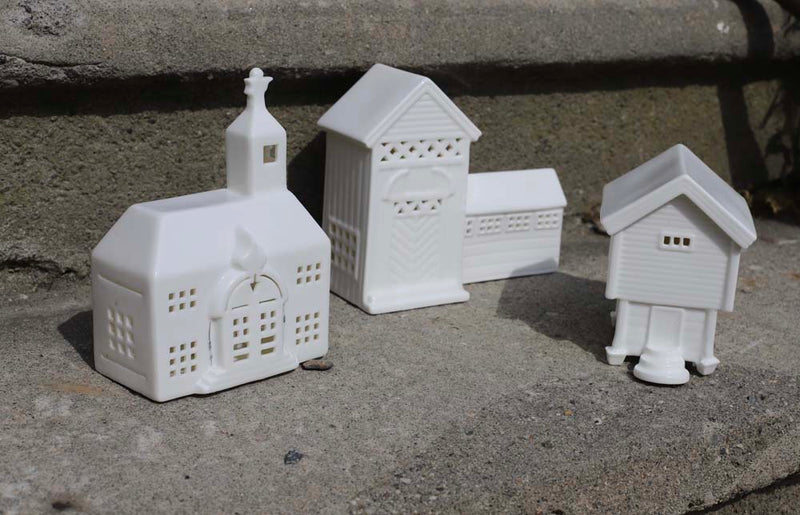 Lekre miniatyrer av husene på Lysebu i porselen tegnet av Jette Frölich og produsert av Porsgrunds Porselænsfabrik. Nye tilskudd i år er Fløyen og Stabbur. Husene har integrert led-lys med bryter på undersiden. Produktene kommer i en pen gaveeske.