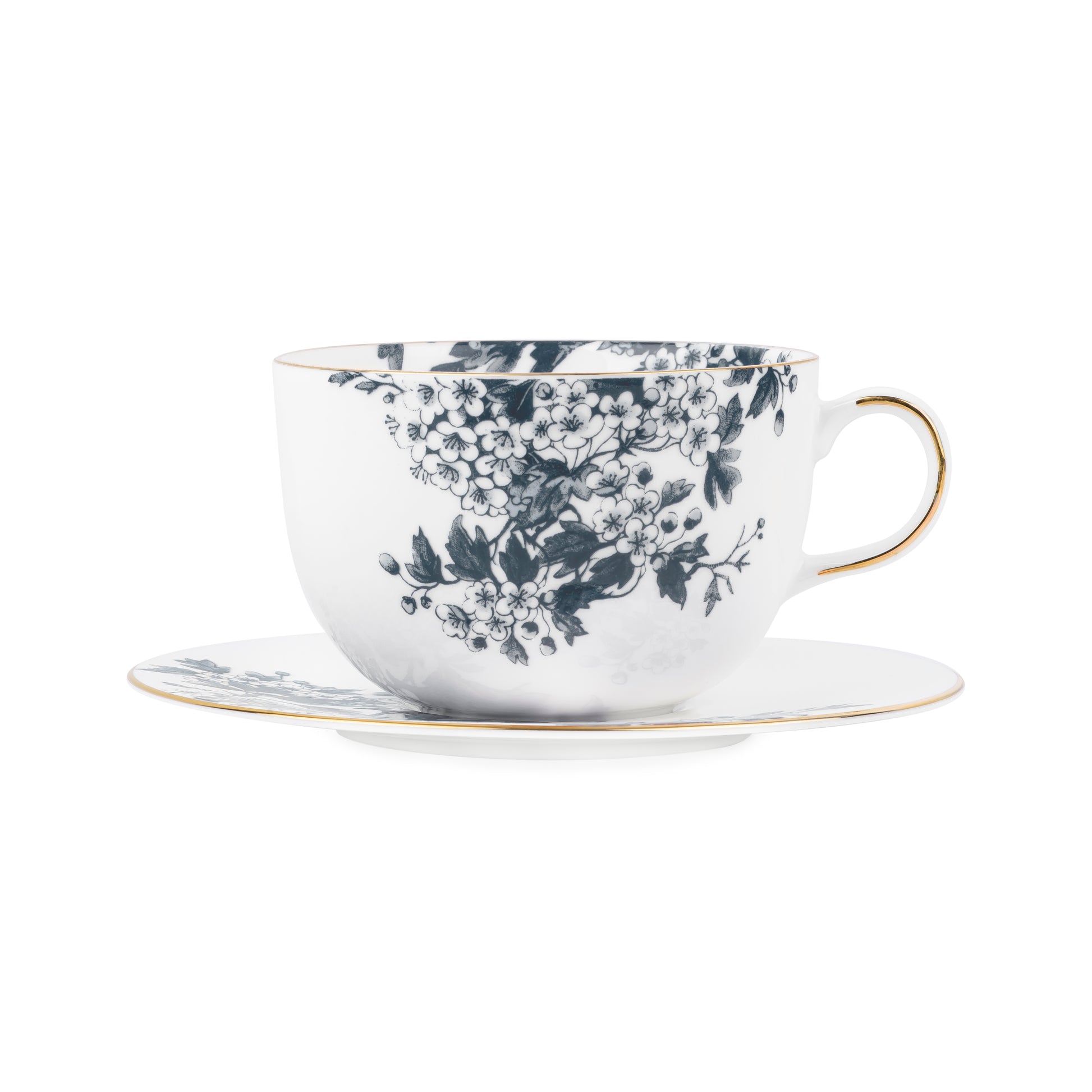 This black 40 cl tea cup and saucer from the Porsgrunds Porselænsfabrik x byTiMo collection combines vintage-inspired design with a modern, minimalist saucer. The cup has a diameter of 105 mm, and the hand-painted gold rim adds a luxurious touch. The saucer, with a diameter of 166 mm, is designed to fit perfectly under the cup, creating a harmonious and elegant ensemble. This tea cup is equally suited for cozy moments by the fireplace or in your favorite chair, as well as on a beautifully set table for breakfast or lunch.