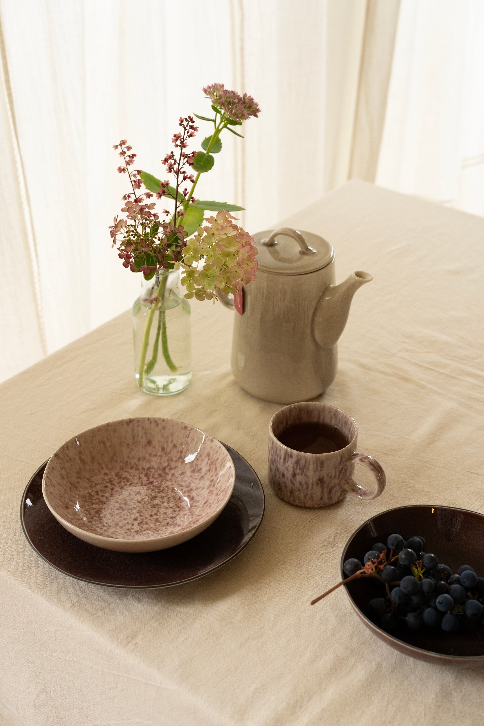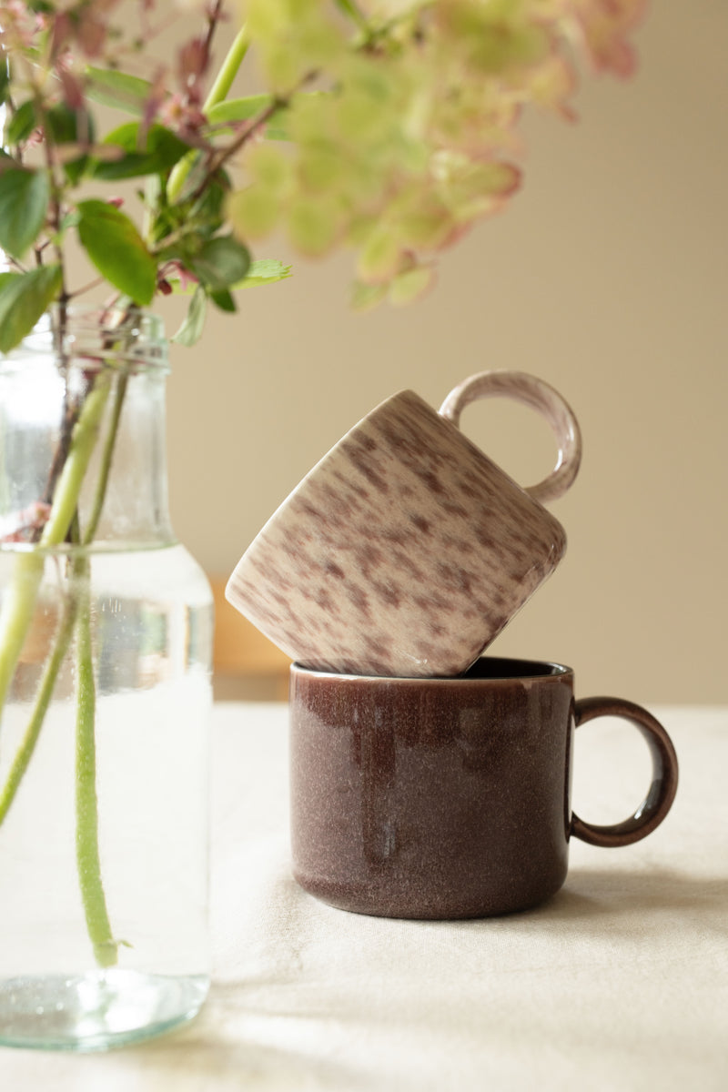 Et stemningsfullt krus i duse rosatoner, perfekt til kaffe eller te. Fargespillet i glasuren gir en levende og naturlig følelse som gjør hver kopp unik.