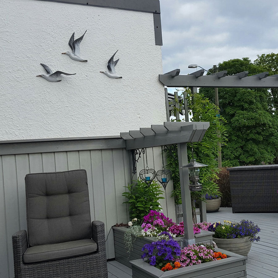 The seagull with spread wings depicts the bird in graceful flight, soaring freely. Hand-painted with lifelike details, it captures the moment of the seagull gliding effortlessly through the air. A stunning piece that brings a touch of nature's beauty into your home.