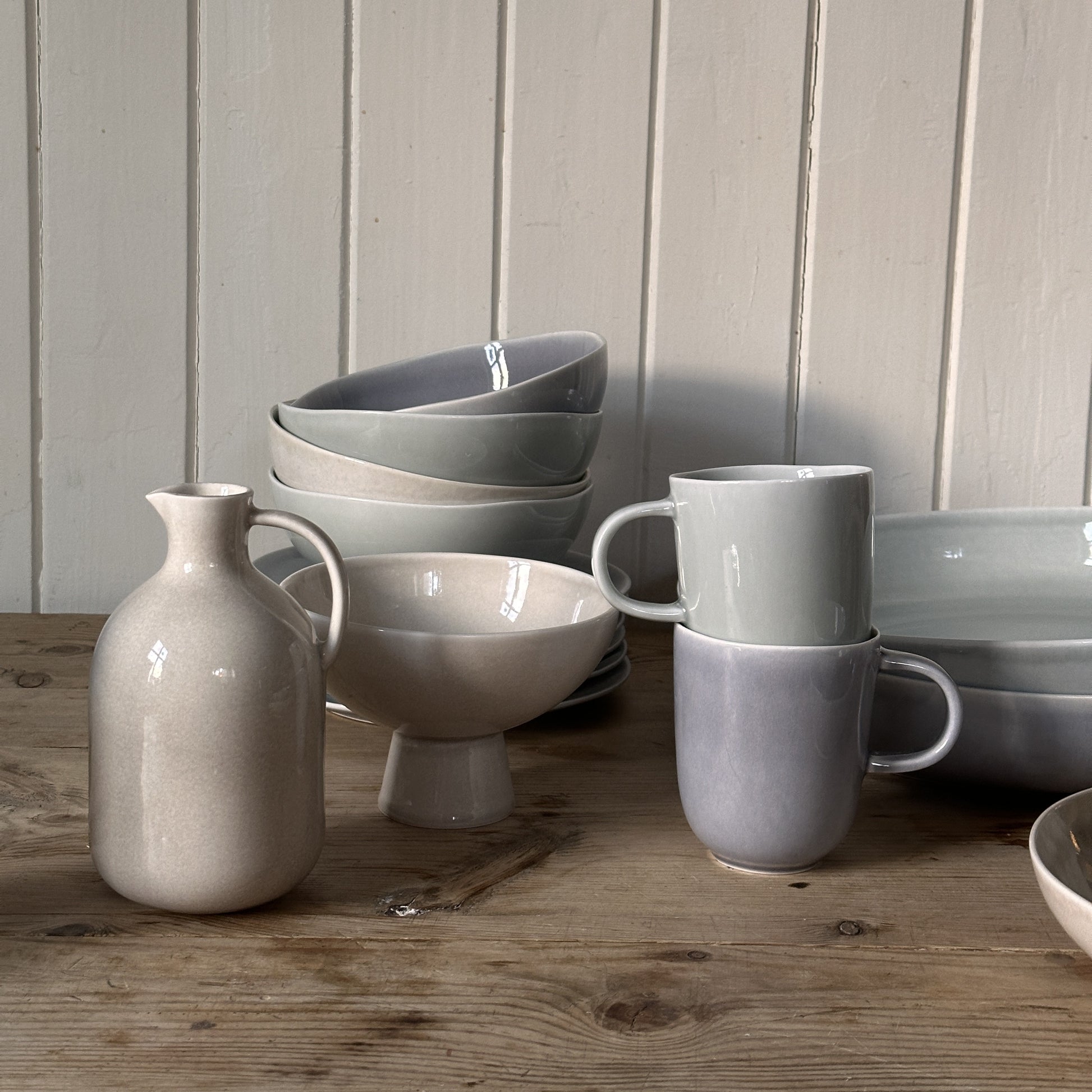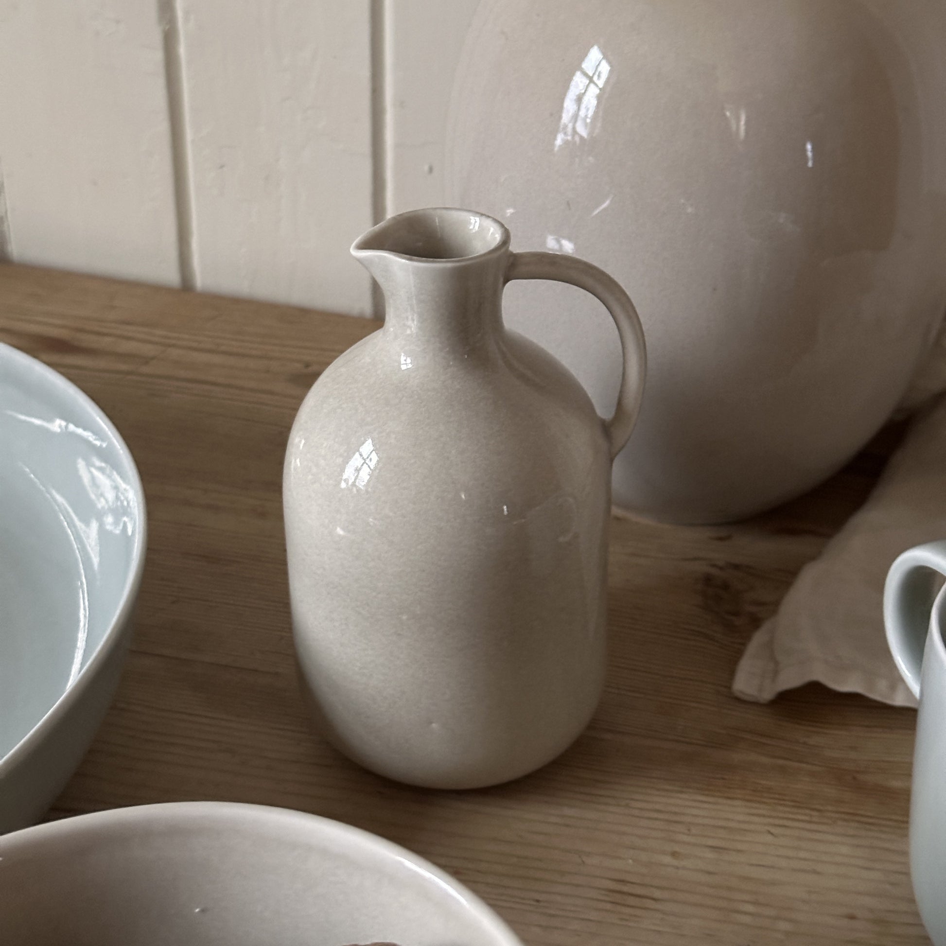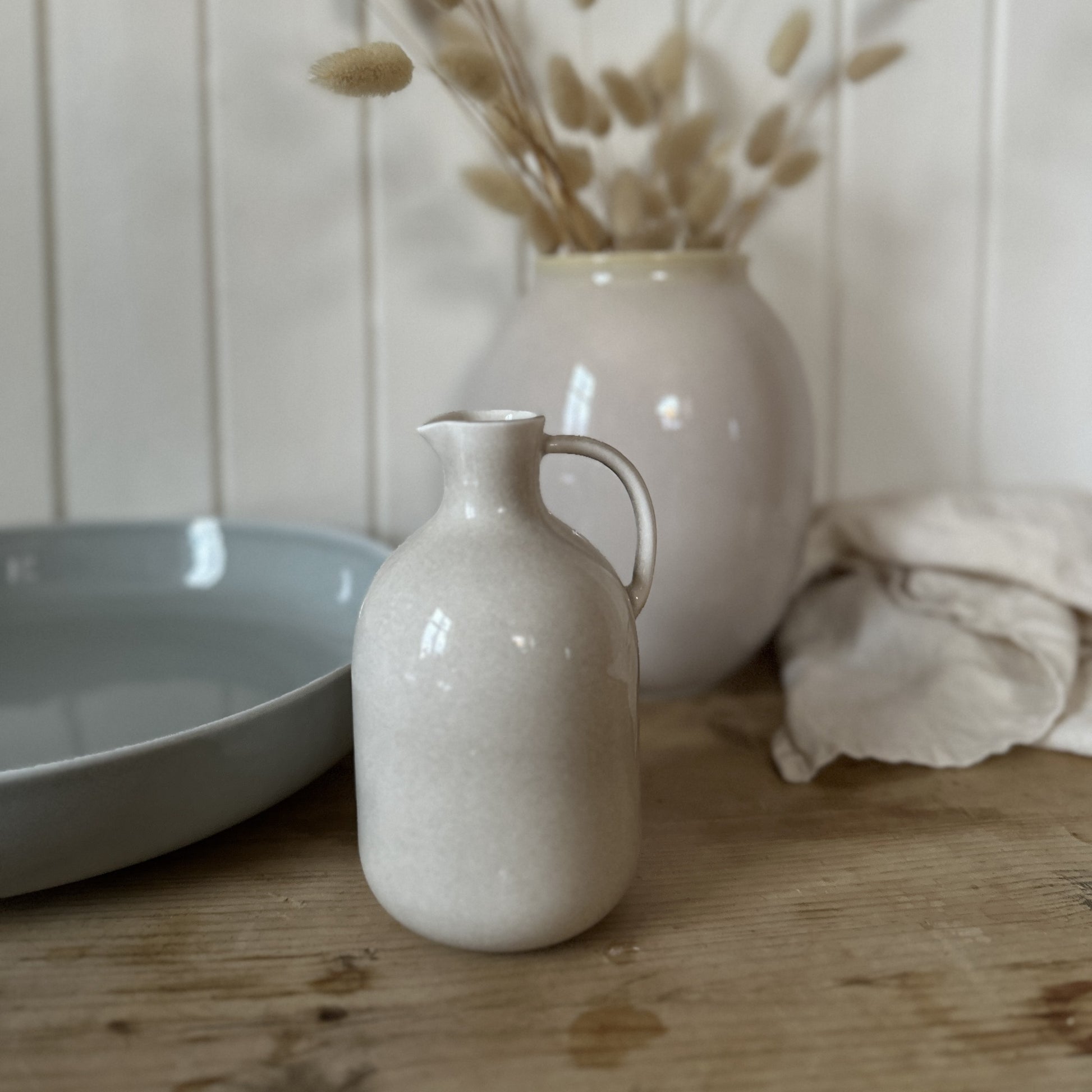 The 5 dl oil bottle in Latte is a charming and elegant addition to the Ellie collection. The bottle features a small handle, pour spout, and a practical cork, making it both functional and decorative. Its warm beige tone and timeless design make it perfect for storing oil, vinegar, or vinaigrette.