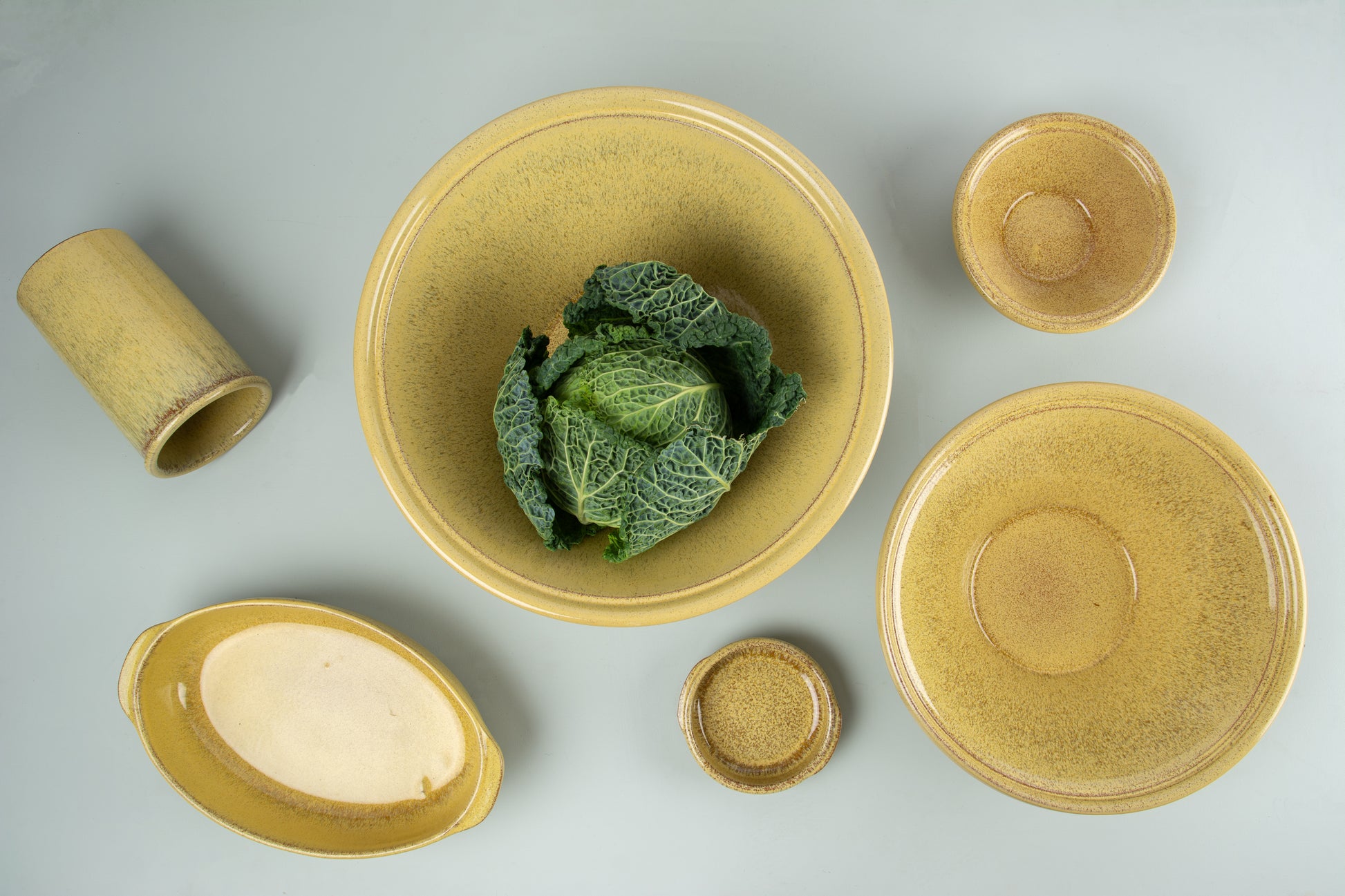 Elegant 24 cm oval dish in Ocre from the Terra series by Porsgrunds Porselænsfabrik. The warm golden glaze offers a timeless look that suits any table setting. Perfect for serving side dishes, appetizers, or desserts. Made from durable ceramic.