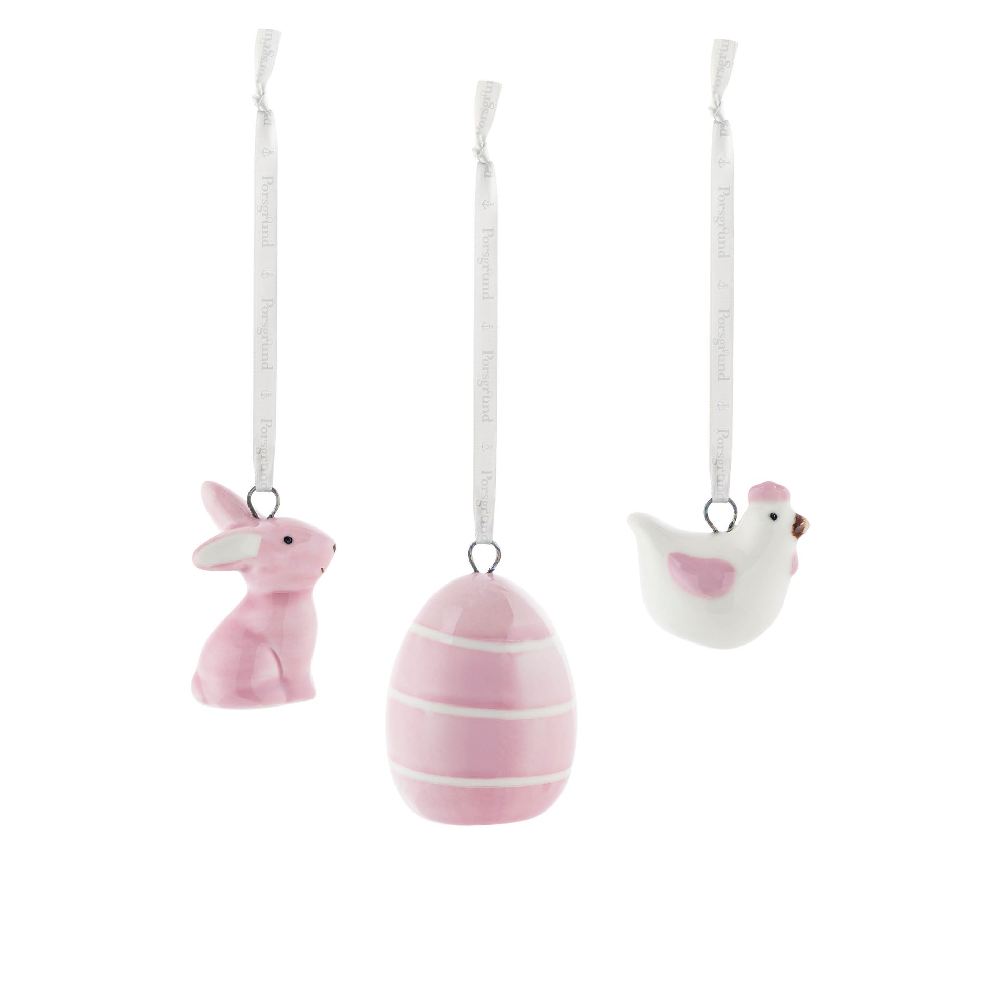 PÅSKEPYNT PORSELEN - HØNE, HARE, KANIN, EGG 3 PK - ROSA