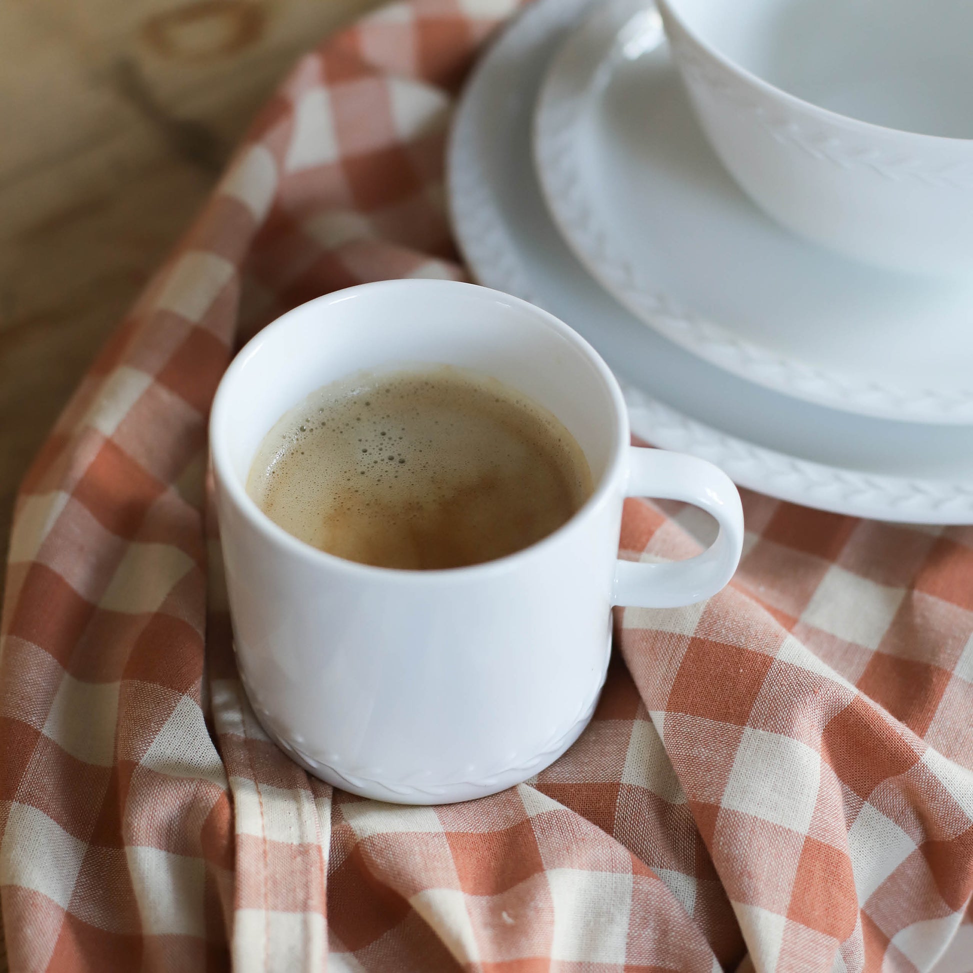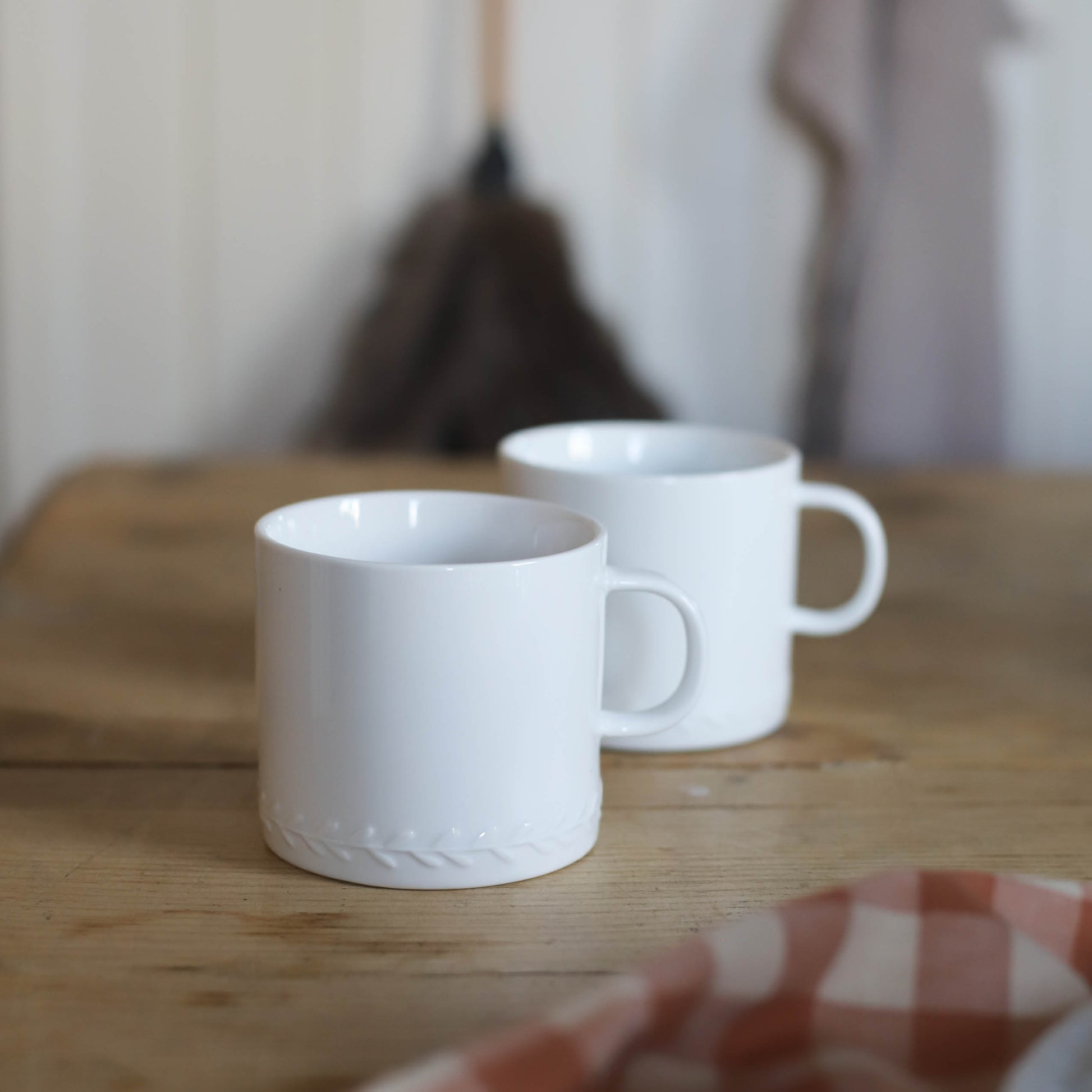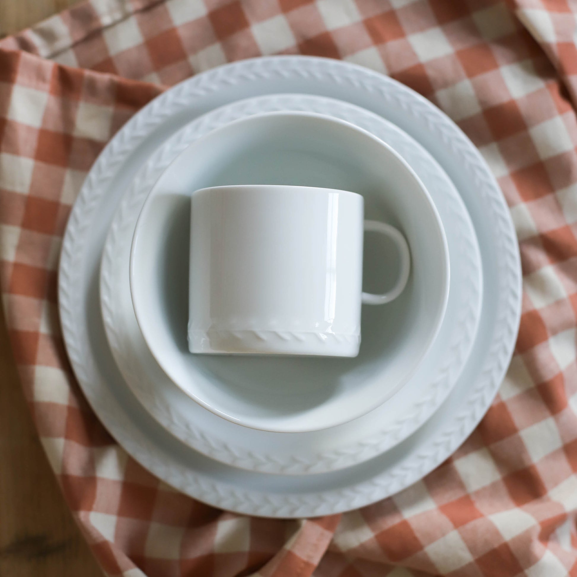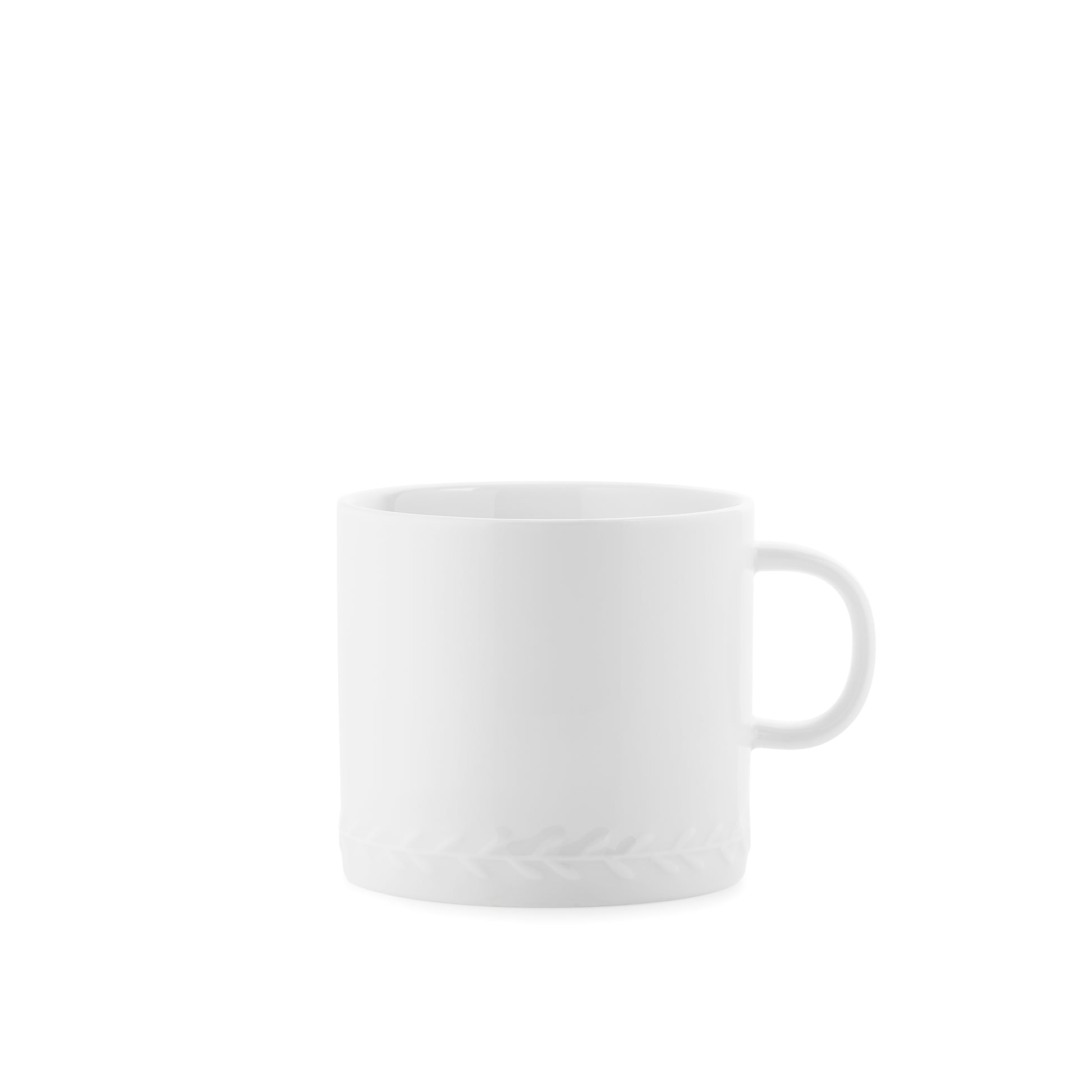 The Pors cup holds 35 cl and is ideal for both coffee and tea. The cup is completely white, offering a clean and timeless look. A delicate relief of the myrica gale plant lines the edge, adding subtle and elegant charm. Inspired by the aromatic myrica gale plant that grows around Porsgrunn, this cup is not only functional but also a beautiful decorative piece. The white cup is stunning on its own but can also be paired with the green version for a harmonious and varied table setting.