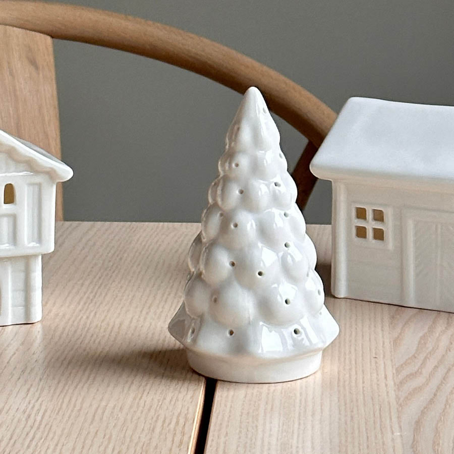 Create a cozy atmosphere in your home with our little farm consisting of charming porcelain houses. TUNTRE is inspired by traditional wooden houses, taking you back to the architectural style of Norway from the 1700s and 1800s. This small tree perfectly complements our "Jul på tunet" series, and it pairs beautifully with the other houses in the collection.