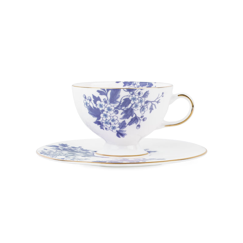 Denne blå kaffekoppen og skålen på 20 cl fra Porsgrunds Porselænsfabrik x byTiMo-kolleksjonen kombinerer vintage-inspirert design med en moderne, minimalistisk skål. Koppen har en diameter på 90 mm og den håndmalte gullkanten gir et luksuriøst preg. Skålen, med en diameter på 153 mm, er designet for å passe perfekt under koppen, og gir en elegant helhet til kaffestunden. Enten du nyter en rask morgenkaffe eller en koselig pause i godstolen, er denne koppen perfekt for de små, men viktige øyeblikkene i hverdagen.