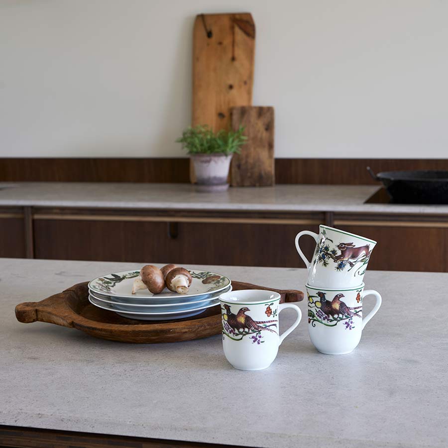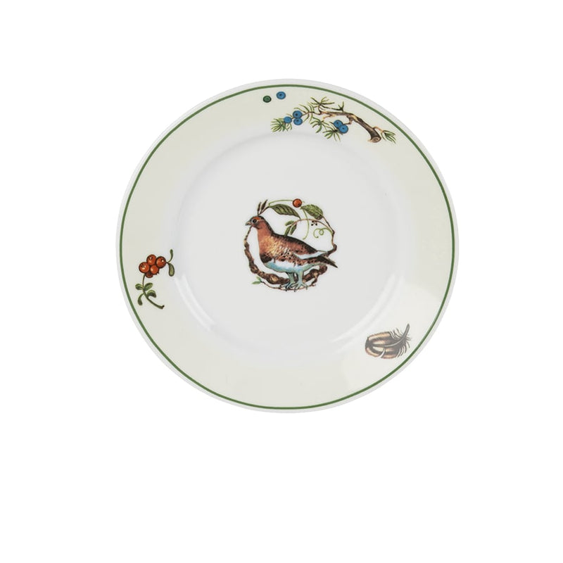 Faunamønsteret ble unnfanget da illustratør Astrid Reppe var på tur i den norske villmarka. Den norske faunaen med sin ville, uberørte, natur ble til et flott og robust design der både rev, hare og rype finnes mellom einebær og andre ville planter. Serviset ble lansert i 1998 Har du hytte på fjellet eller driver du med jakt? Fauna er det perfekte serviset når gode viltretter serveres! Høybrent feltspatporselen er den porselenskvaliteten Porsgrunds Porselænsfabrik har produsert siden 1887, altså fra begynnelsen. Det høybrent porselenet regnes som den edleste kvaliteten av porselen og kjennetegnes ved at det er gjennomskinnelig hvitt med en klar glansfull glasur. Høybrent porselen består kun av rene naturmaterialer, er 100% tett, svært robust og er velegnet til både fest, og hverdagsbruk.
