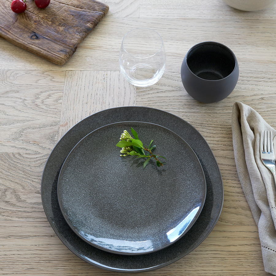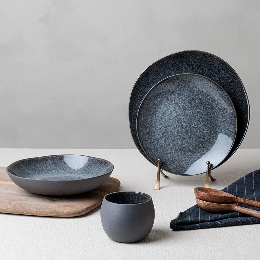 Det er vanskelig å beskrive Onyx i ord, for vi mener helt klart at det er noe som må oppleves. Onyx er en spennende og innovativ glasur ulikt noe annet vi har i sortiment fra før. Der utsiden er helt matt sort, finner man en spennende blank glasur på innsiden av alle delene. Den blanke glasuren er reaktiv som gjør at hver del får et unikt og nesten metallisk fargespill. Onyx er en reise i teksturer og kontraster: Mens det blanke reflekterer lyset, absorberes det helt i den matte utsiden. Resultatet er unike og spennende deler som oser av eksklusivitet. Bruk delene alene, eller sammen med andre farger fra Naturserviset for et organisk uttrykk.
