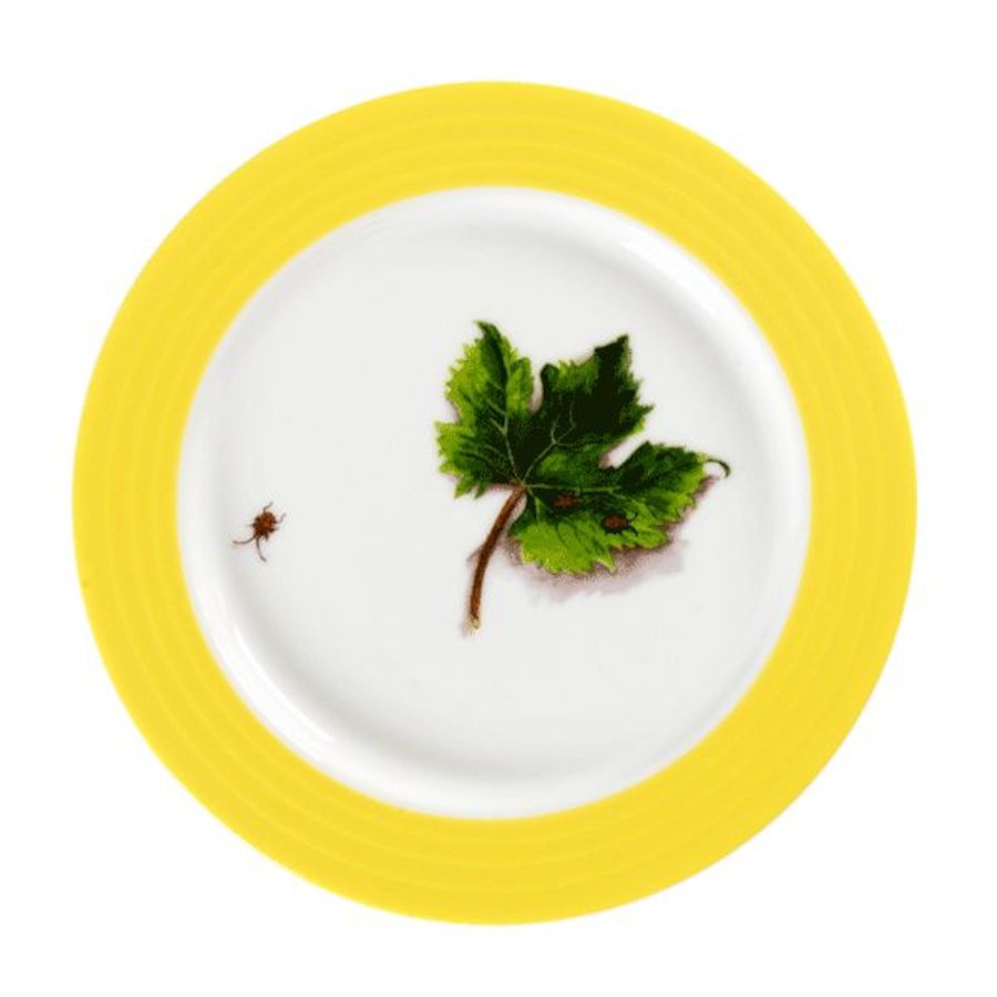 Den perfekte asjetten for alt fra frokost til småretter og desserter. Med en bred gul kant og et delikat motiv av et grønt blad og et lite insekt i midten, gir denne asjetten et lyst og sommerlig preg til borddekkingen. Kombiner den med middagstallerken 27 cm for en helhetlig borddekking, eller bruk den sammen med kopp & skål 23 cl for en innbydende kaffestund.