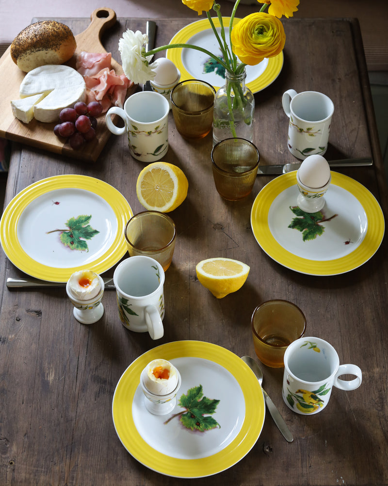 Citron-serien bringer solskinn til bordet med sitt livlige sitronmønster og friske gule nyanser. Inspirert av middelhavets frodige sitronlunder, kombinerer dette sitronserviset Porsgrunds håndverkstradisjoner med et friskt og lekent uttrykk. Serien er designet av Ferdinand Finne og laget av høybrent, slitesterkt porselen som tåler både oppvaskmaskin og mikrobølgeovn. Perfekt sommerservise til lange, sosiale måltider – enten det er frokost på terrassen eller middag med gode venner.