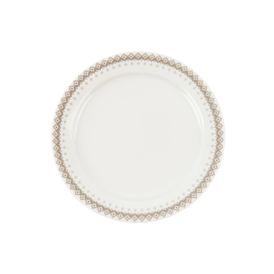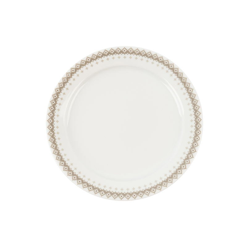 Ingrid asjett 21 cm grå. Med serviset Ingrid går Porsgrunds Porselænsfabrik tilbake til røttene, og henter inspirasjon fra Øst-Telemarksbunaden. Mønsteret i dekoren på serviset, er moderniserte versjoner av broderier fra de over 150 år gamle bunadsskjortene.