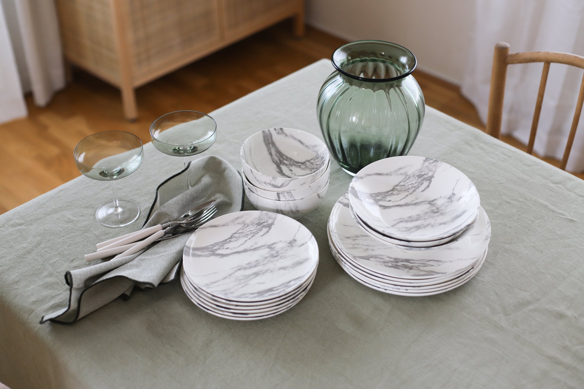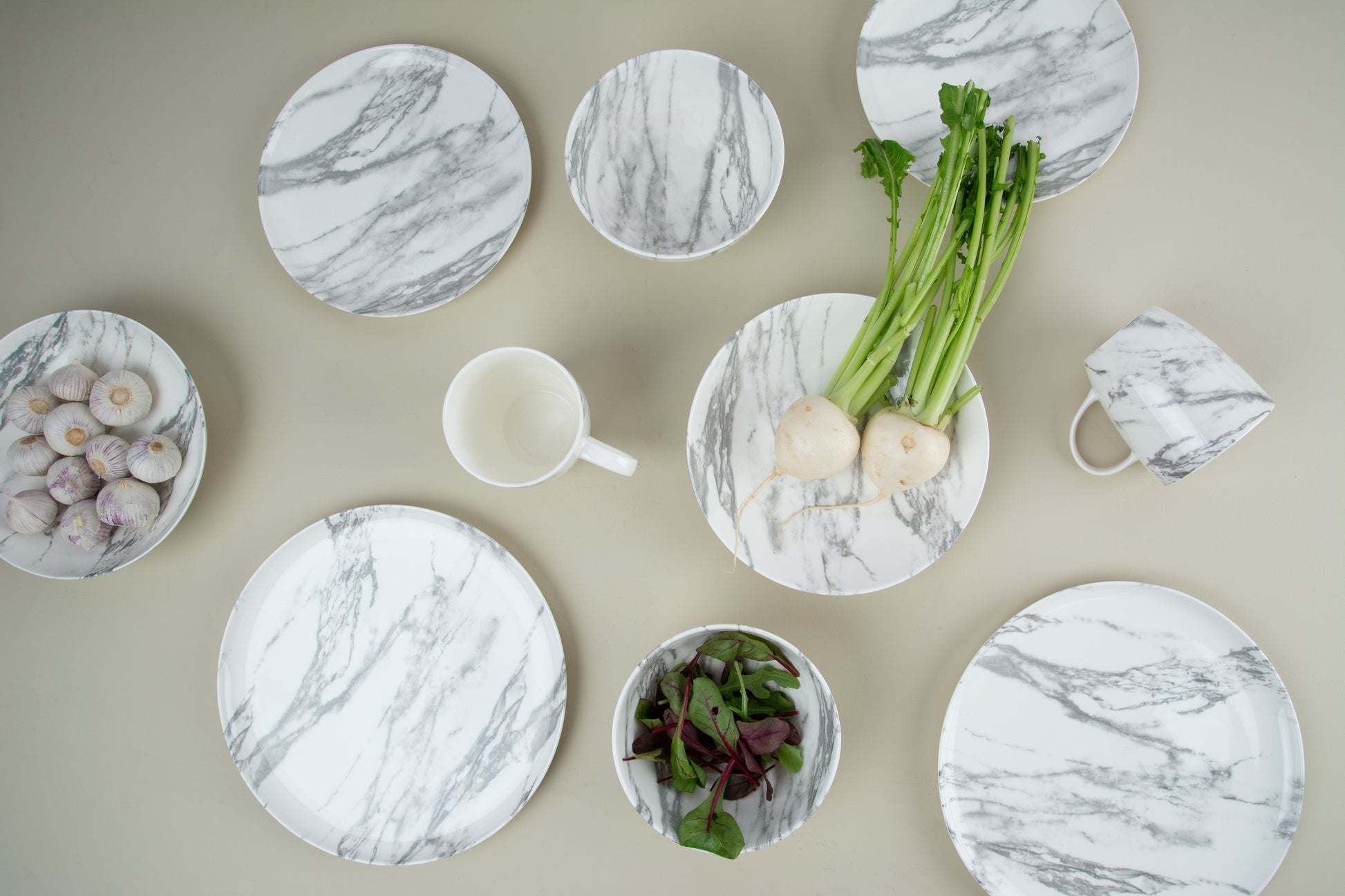 Marmorserviset kombinerer tidløs eleganse med Feather Porcelain sin verdenspatenterte teknologi – et lett, men slitesterkt porselen som er 30–40 % lettere enn tradisjonelle keramiske serviser, og dermed enkelt å bruke i hverdagen.