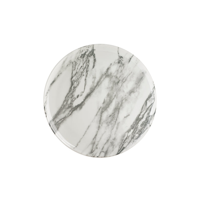 En allsidig liten tallerken i porselen dekorert med klassisk marmormønster. Asjetten er ideell til frokost, småretter eller dessert, og gir et moderne preg til både hverdagsbord og kaffestunder.
