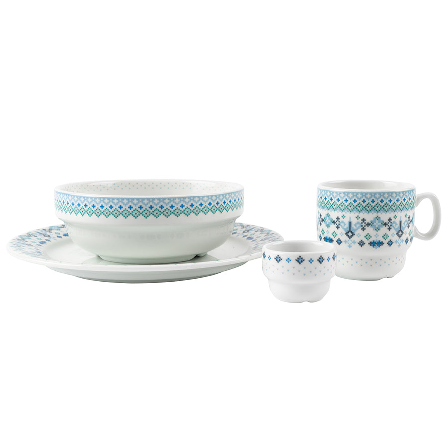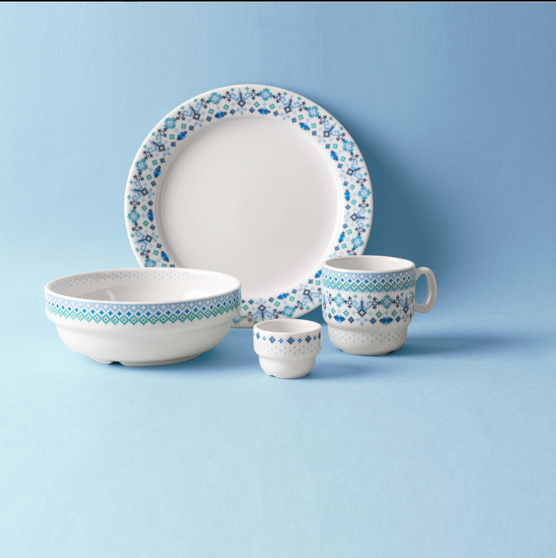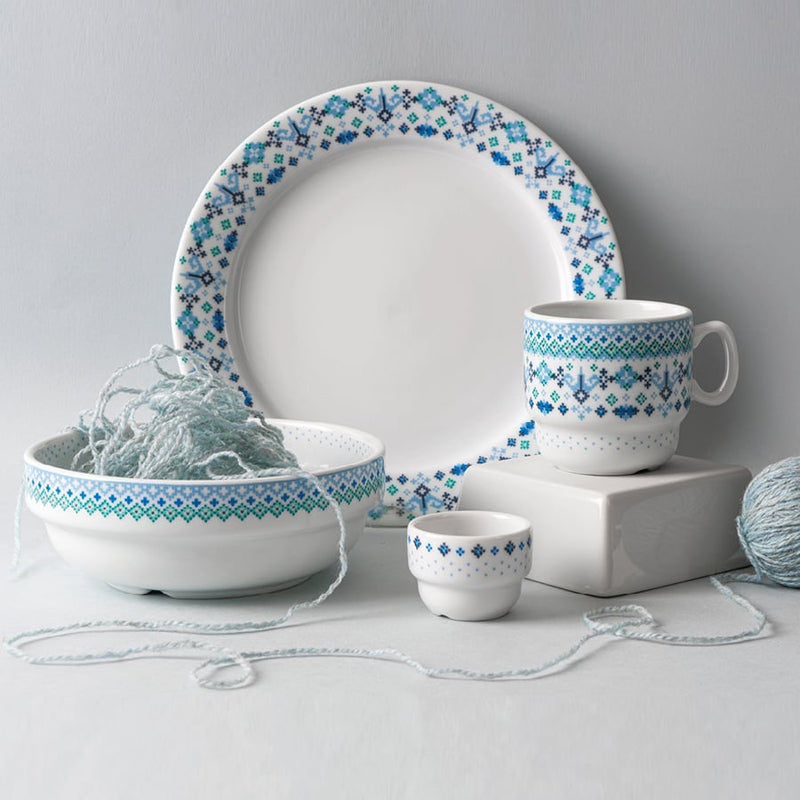 Med serviset Ingrid går Porsgrunds Porselænsfabrik tilbake til røttene, og henter inspirasjon fra Øst-Telemarksbunaden. Mønsteret i dekoren på serviset, er moderniserte versjoner av broderier fra de over 150 år gamle bunadsskjortene.