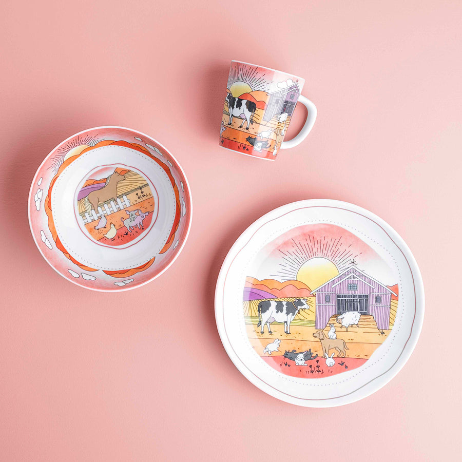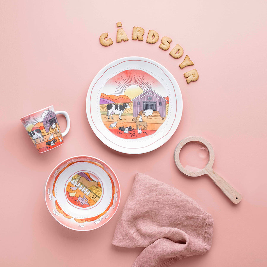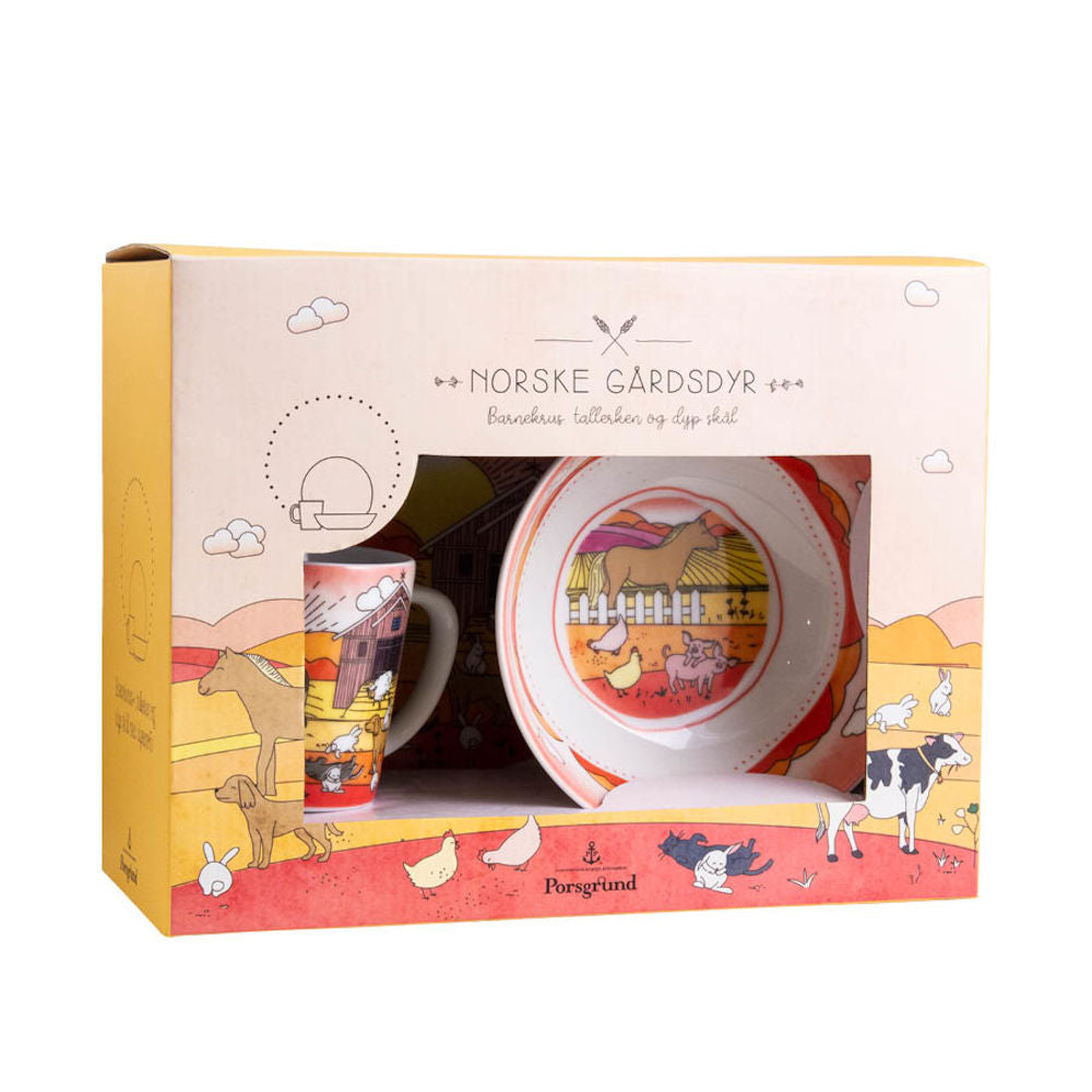 Koselig servise med morsomme dyr fra den norske fauna. Et servise som garantert blir satt pris på av de minste under spisestunden. Det er gøy og lærerikt for de små å peke på dyrene og fortelle om hva de sier og hva de heter.