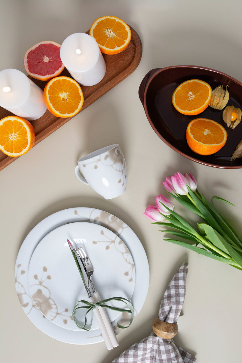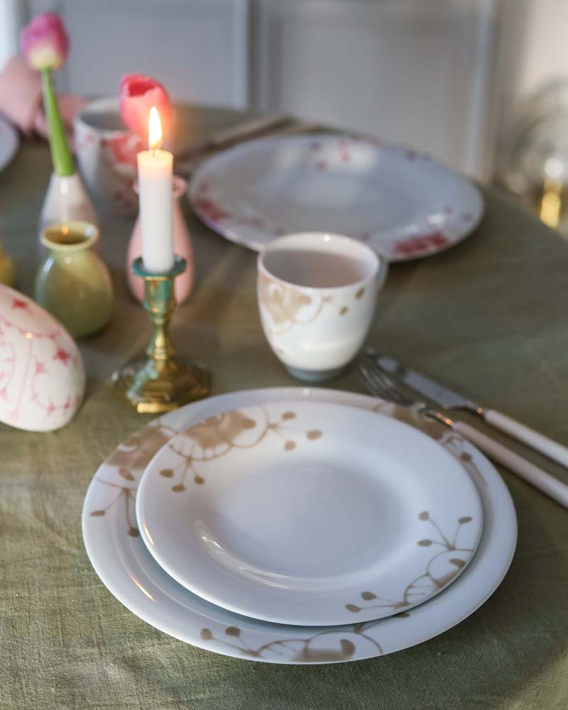 Maxistrå beige fra Porsgrunds Porselænsfabrik er et tidløst og elegant servisedesign som gir borddekking en varm og innbydende atmosfære. Den klassiske strådekoren får et mykt, beige uttrykk som gir serviset både dybde og stor allsidighet — perfekt for både hverdagslige måltider og festlige anledninger.