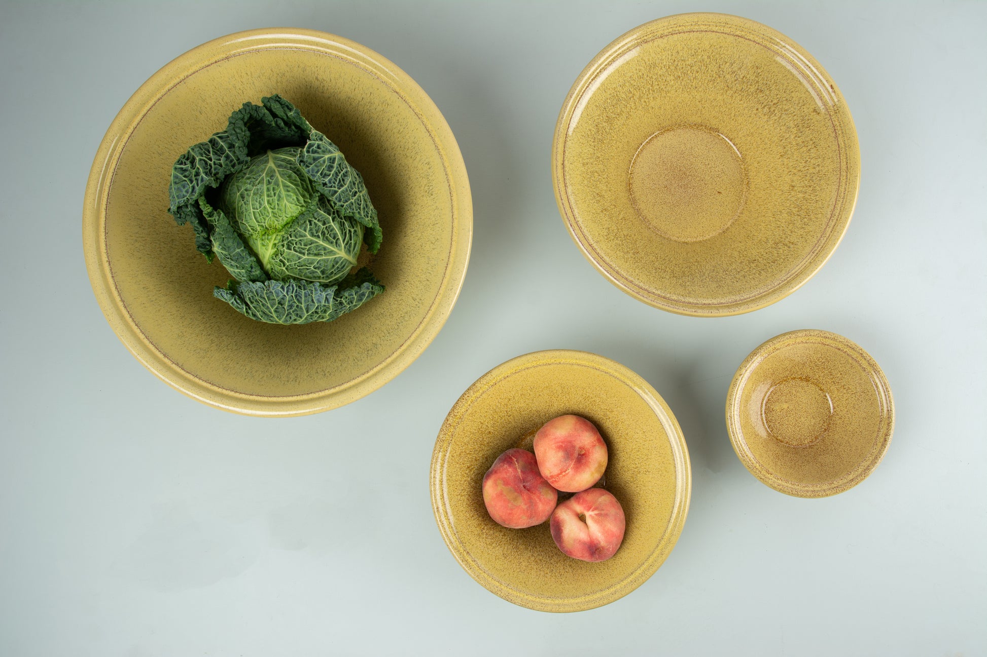Gi borddekkingen et varmt og naturlig preg med Terra-bolle i 17 cm i fargen Ocre fra Porsgrunds Porselænsfabrik. Den dype, gylne tonen fremhever rettene og skaper en koselig atmosfære. Perfekt til servering av frokostblanding, salater, snacks eller småretter. Laget i slitesterk keramikk med en glasur som gir et unikt uttrykk..