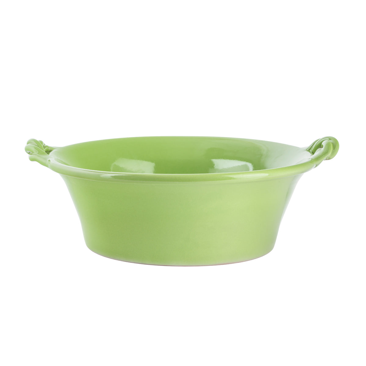 Bolle med flettehank 30 cm Pistachio har samme funksjonelle design, men kommer i en frisk og naturlig grønnfarge. Den passer perfekt til alt fra friske salater til ovnsbakte grønnsaker eller som en sjarmerende serveringsbolle til tapasbordet.