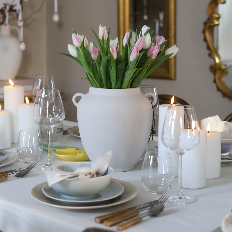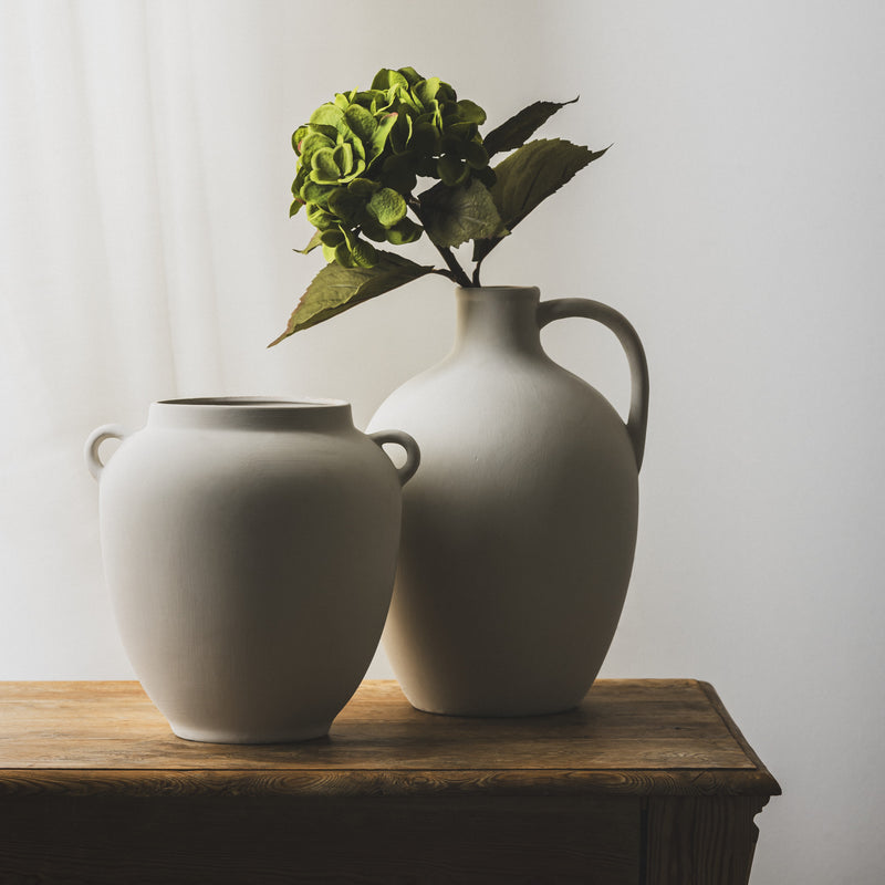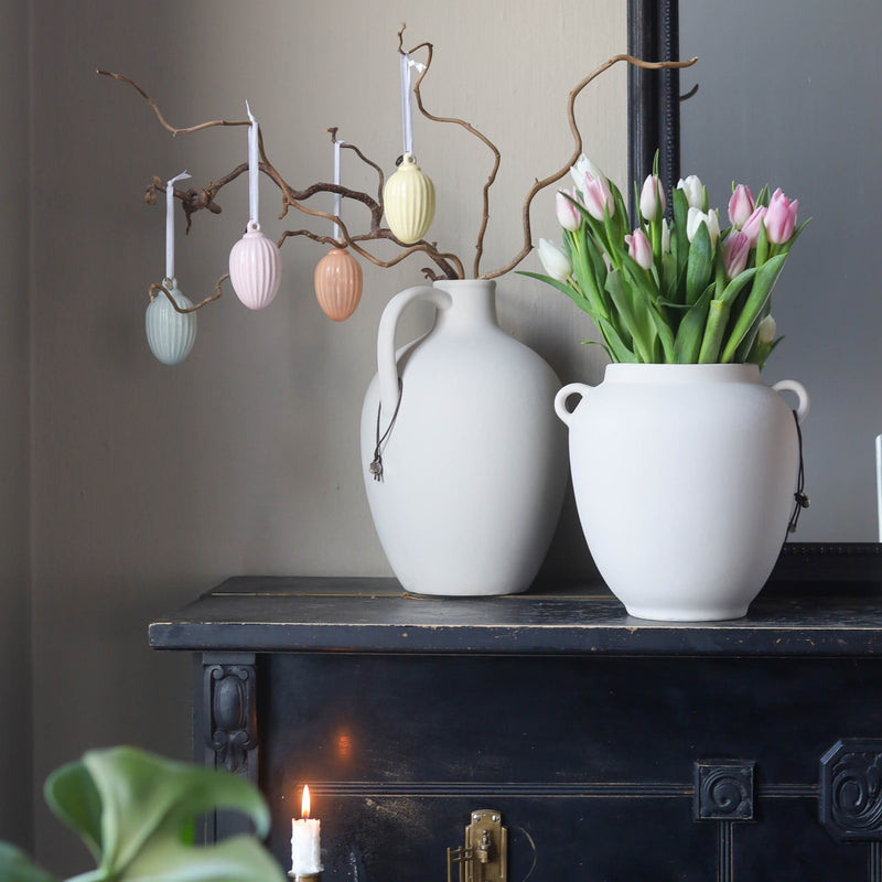 Cleo-krukken på 26 cm har en elegant form og en delikat, lys beige farge med en vakker pusset overflate. Perfekt for å gi hjemmet ditt et stilrent preg, enten den står alene eller fylles med blomster, kvister eller strå. Denne krukken er like fin på stuebordet som i en hylle eller vinduskarm.