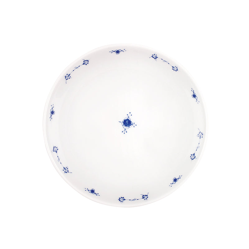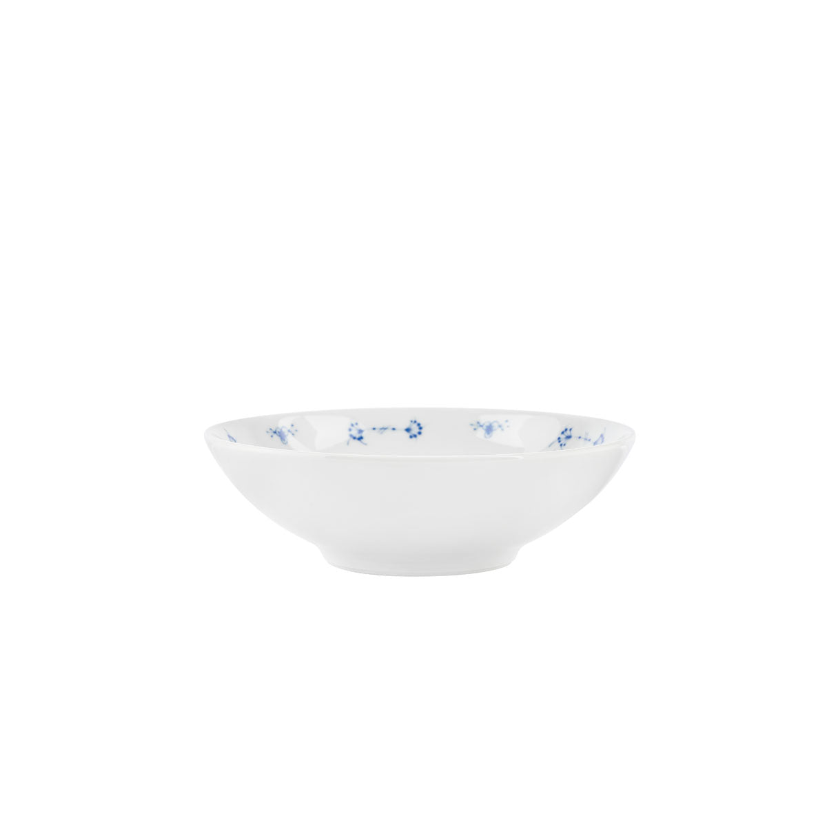 Denne dessertskålen på 16 cm kombinerer en elegant form med det delikate Ministrå-mønsteret rundt kanten og i midten. Perfekt til søte avslutninger som dessert, frukt eller små snacks. Skålens design er mer raffinert enn de større bollene, noe som gjør den til et naturlig valg for spesielle anledninger. Laget av høybrent feltspatporselen tåler den både daglig bruk, oppvaskmaskin og mikrobølgeovn. Kombiner den med bollene fra samme serie for en komplett og harmonisk borddekking.