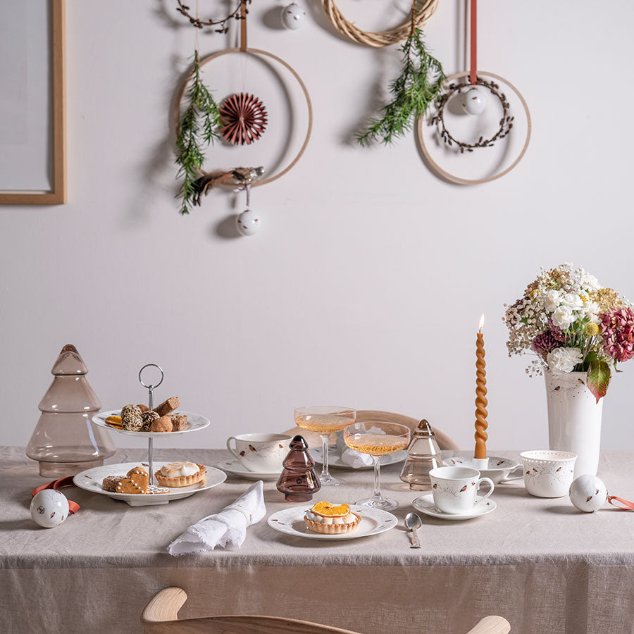 Hva er vel koseligere enn en liten, lubben, rød fugl på en rimfrostet gren? Dompap-serviset er utviklet med den norske vinteren i tankene og er det perfekte vinterservise til julehøytiden. Den fargesterke dompapen skinner på dette elegante penserviset i benporselen, satt mot et bakteppe av blekt vinterlys og nakne grener. Med små, luksuriøse detaljer i ekte platina tilfører Dompap-serviset både varme og eleganse til ethvert dekket bord. Serviset er designet av Maud Gjeruldsen Bugge og laget for å skape koselige stunder.