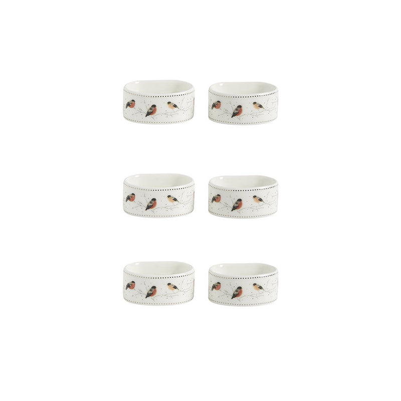 Dompap serviettringer i en pakke med 6 stk gir et elegant preg til julebordet ditt. Hver ring har et nydelig dompap-motiv som reflekterer den norske vinterens sjarm. Disse serviettringene er perfekte for å samle serviettene dine med stil, enten det er til festlige anledninger eller hverdagslige måltider. Legg til et snev av juleglede med disse dekorative ringene som passer perfekt sammen med Dompap-serviset.