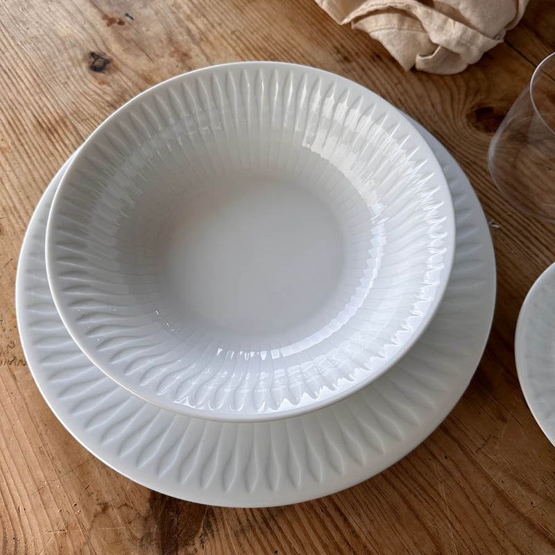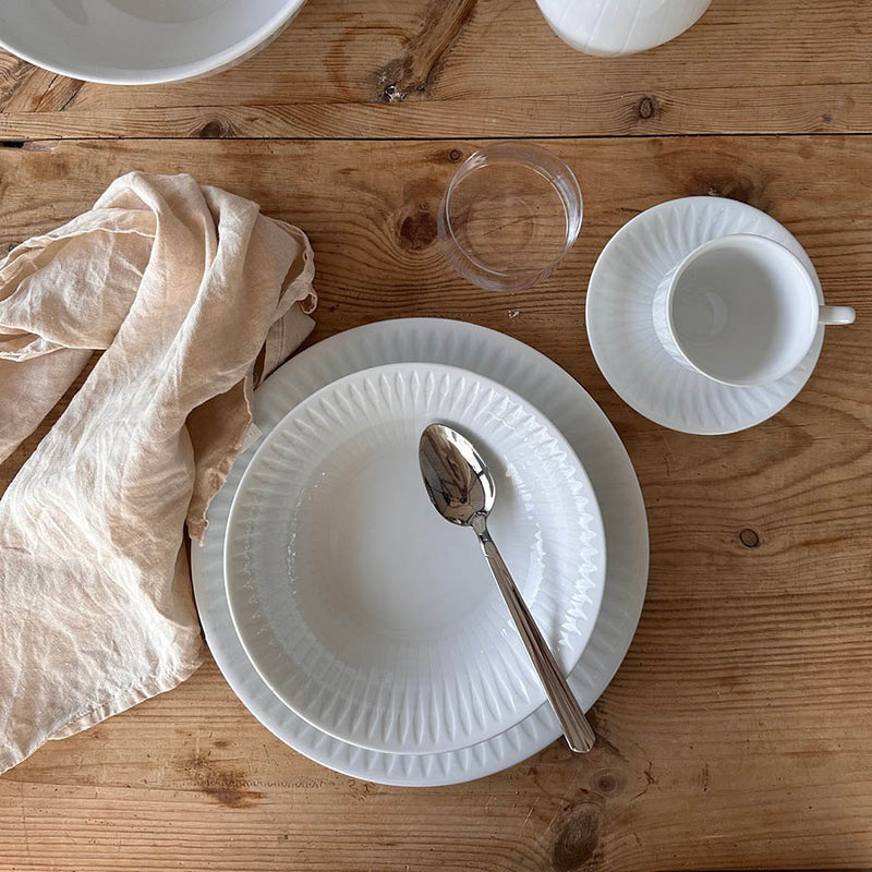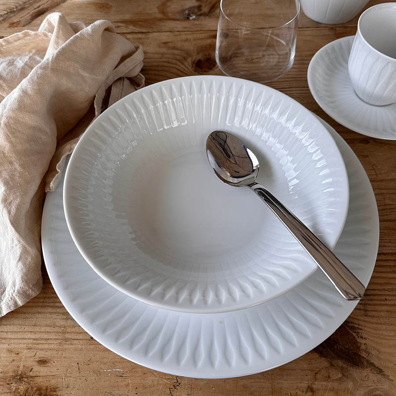 Spire dyp tallerken på 21,5 cm er ideell for supper, pastaretter og salater. Tallerkenen er laget av høybrent porselen, som gir den både holdbarhet og et tidløst design. Den er en del av Spire-serien, kjent for sitt delikate mønster inspirert av naturens former. Tallerkenen tåler både oppvaskmaskin og mikrobølgeovn, og kan enkelt kombineres med andre deler fra samme serie for et enhetlig uttrykk på bordet.