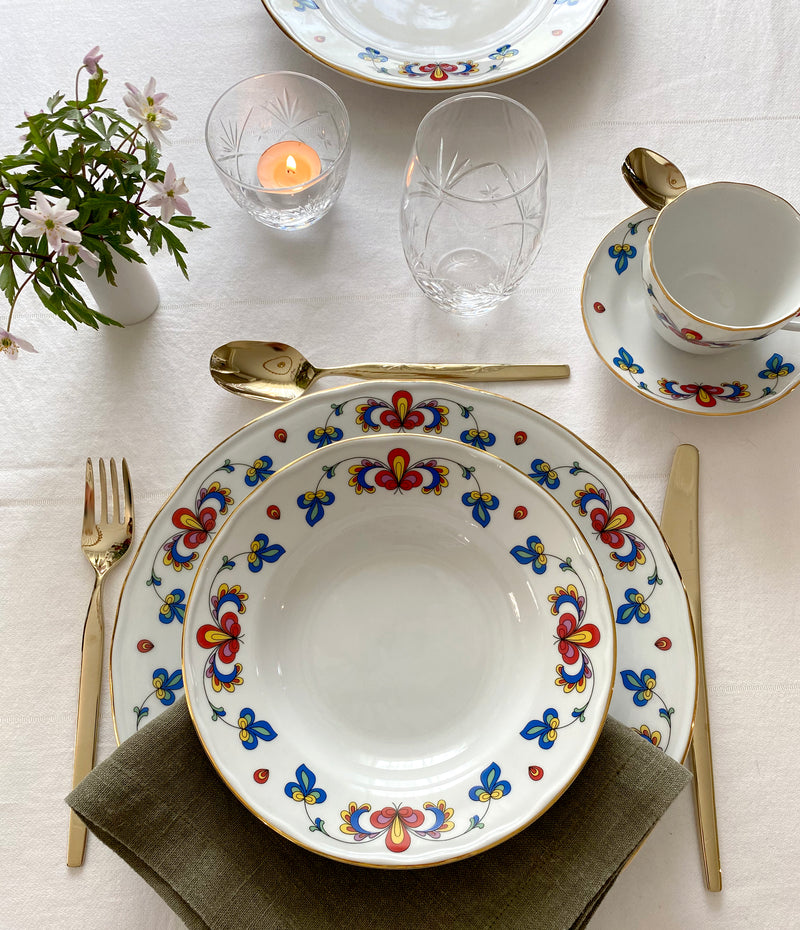 Oppvaskmaskin: Serviser med overglasurdekorer, spesielt gull og platina, er mer utsatt for slitasje og vi anbefaler derfor oppvask for hånd. Generelt anbefaler vi skånsom vask og bruk av glansemiddel, da opprettholdes glasurens glans og du forlenger servisets levetid. ikrobølgeovn: Artikler med gull eller platinadekor må ikke brukes i mikrobølgeovn. Ovn: Vi anbefaler ikke at du setter porselensartikler med gull eller platinadekor i ovnen.
