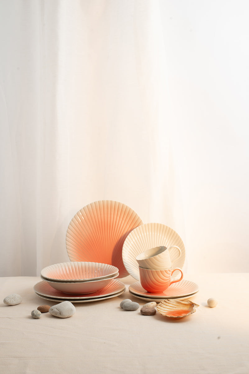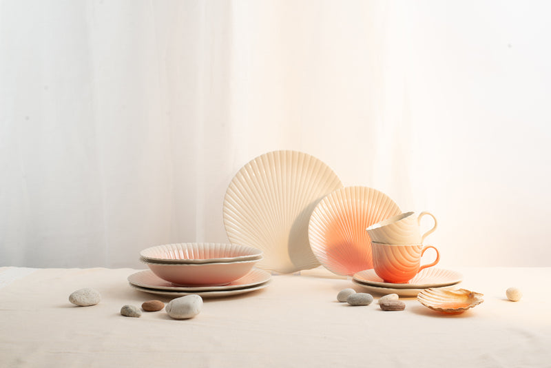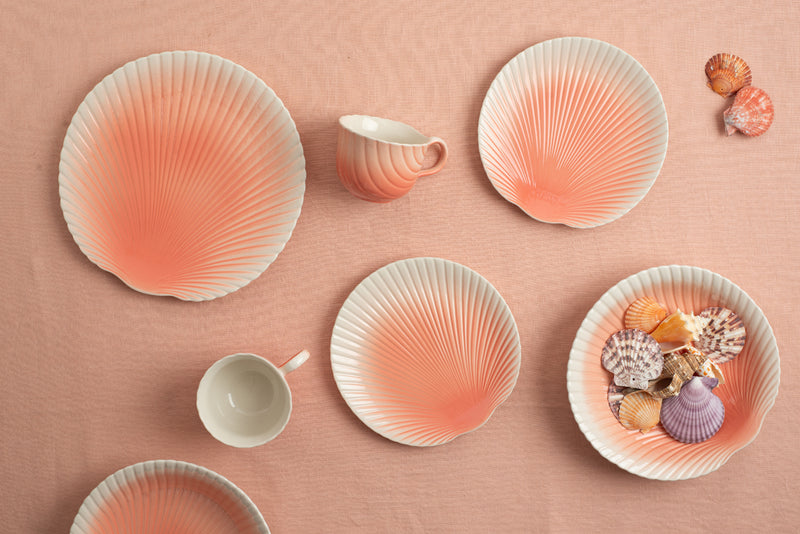 Den dype tallerkenen i korall er et friskt innslag på bordet med sin myke form og levende farge. Inspirert av kamskjell, gir de bølgende kantene et elegant uttrykk som fremhever alt fra kremede supper og pastaretter til delikate sjømatserveringer. En tallerken som skaper en innbydende stemning, enten det er sommerens lette retter eller vinterens varmende måltider.