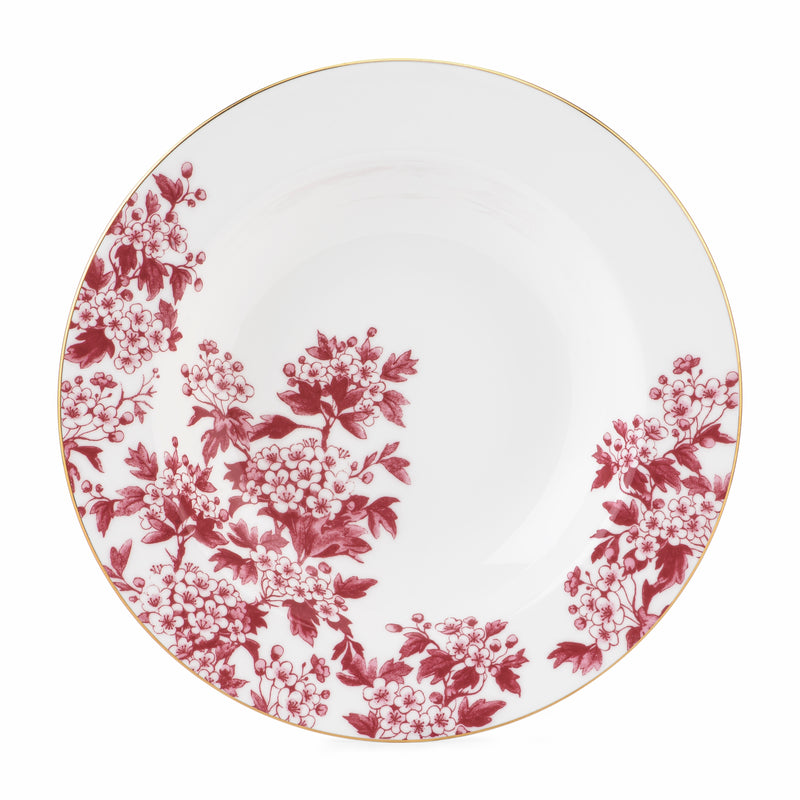 Denne elegante dype tallerkenen på 23 cm fra Porsgrunds Porselænsfabrik x byTiMo-kolleksjonen er både allsidig og sofistikert. Tallerkenen er ideell til servering av individuelle porsjoner med suppe, pasta eller salat, men kan også brukes som serveringsfat. Den egner seg også godt som fruktskål og kan stå fremme hele året. Tallerkenen er hvit med vakker, rød blomsterdekor og gullkant.