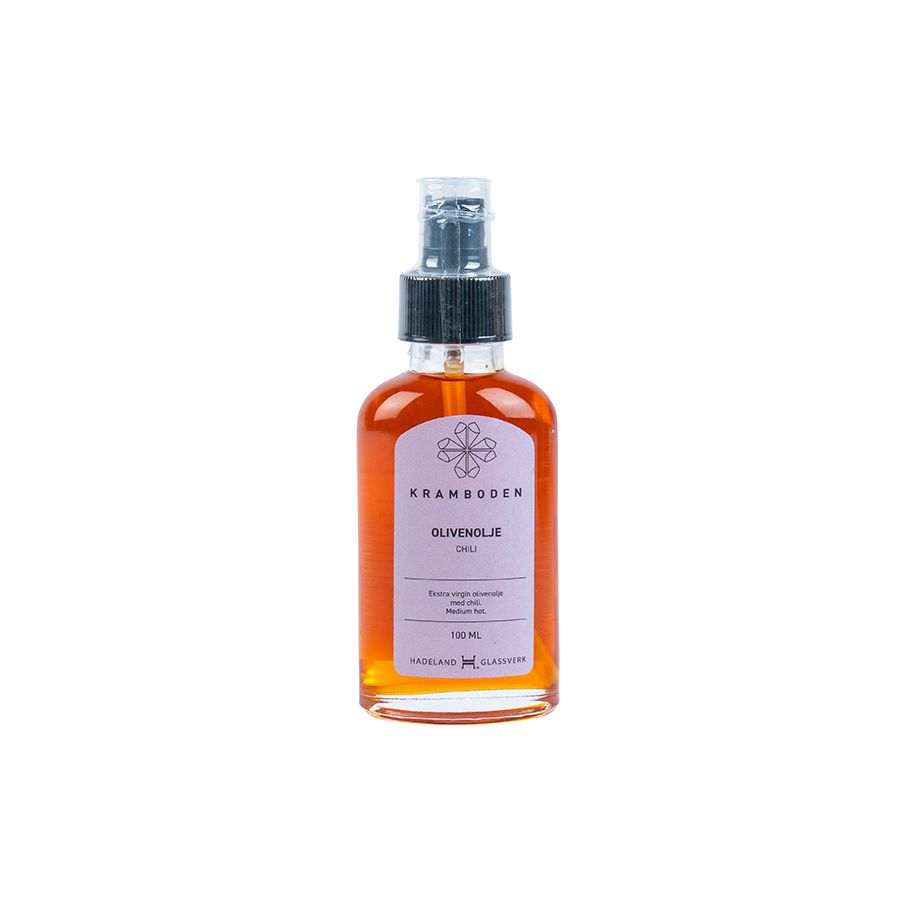 Ekstra virgin olivenolje med chili, produsert i Italie for Kramboden. Flott til blant annet pastaretter, og med den praktiske sprayflasken er det enkelt å fordele oljen i maten.