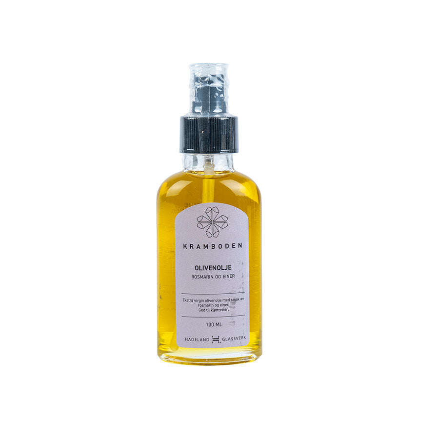 Ekstra virgin olivenolje med smak av rosmarin og einer, produsert i Italie for Kramboden.