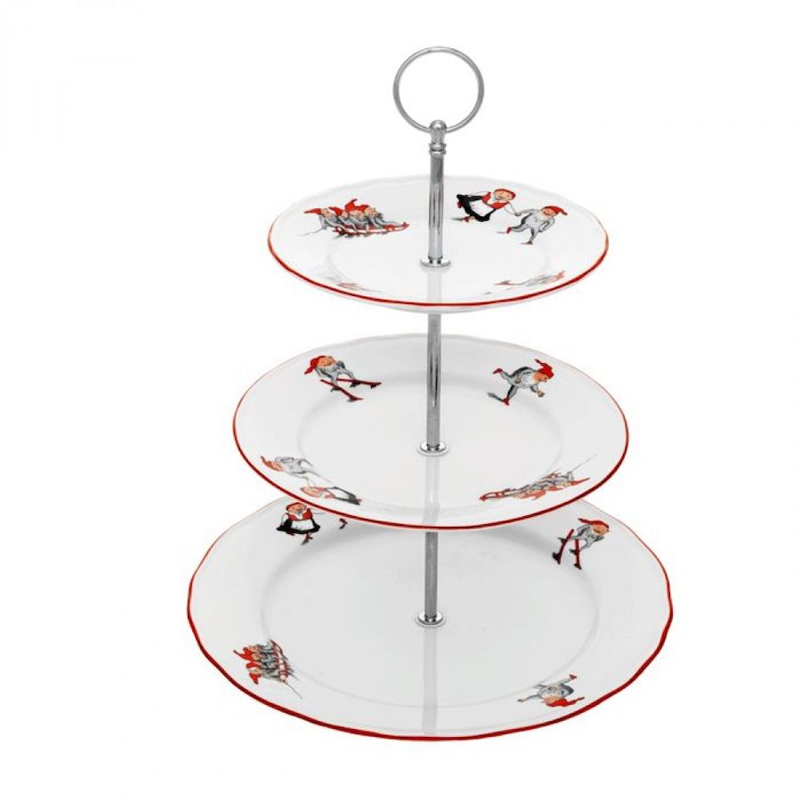 Dette elegante etasjefatet med tre etasjer er perfekt for å servere julekaker, småretter eller de syv sortene i julen. De tre fatene i stigende størrelse prydes av det sjarmerende nissemønsteret, som bringer frem julestemningen. Med en total høyde på 52 cm og en bredde på 29 cm i sitt bredeste punkt, blir dette etasjefatet et vakkert midtpunkt på ethvert festbord.