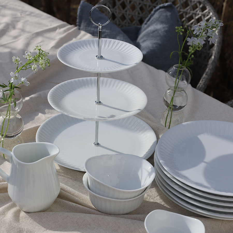 Delikat og dekorativt etasjefat i serien Spire, som løfter et hvert bord.