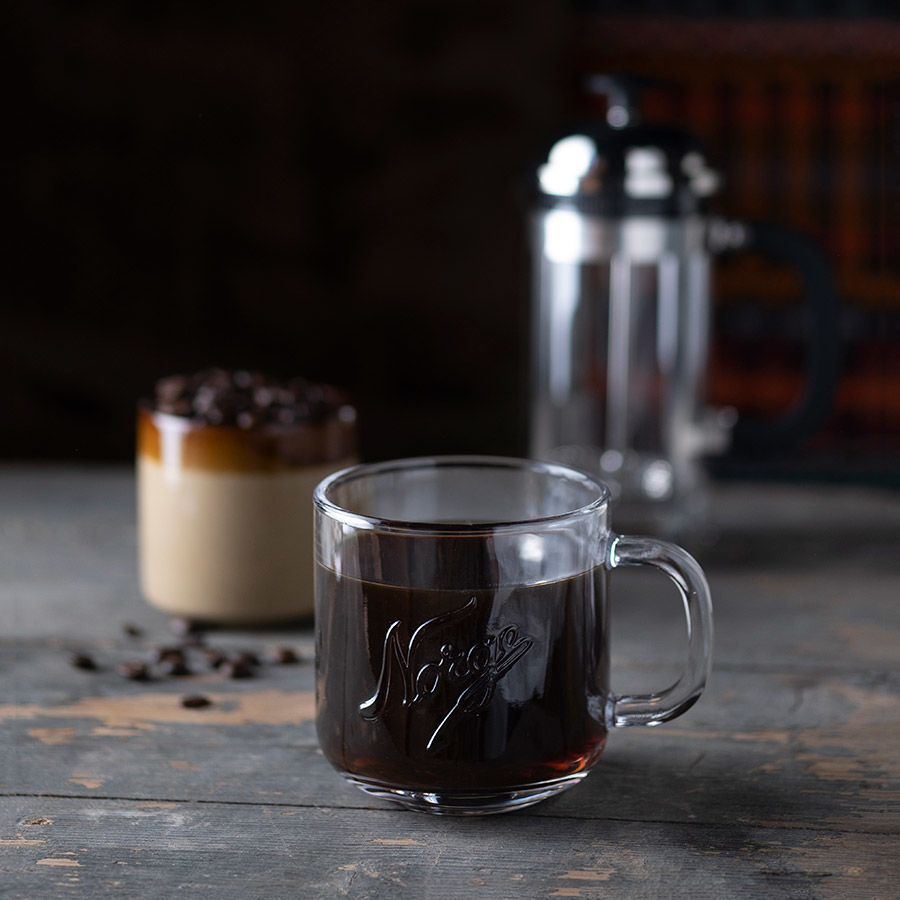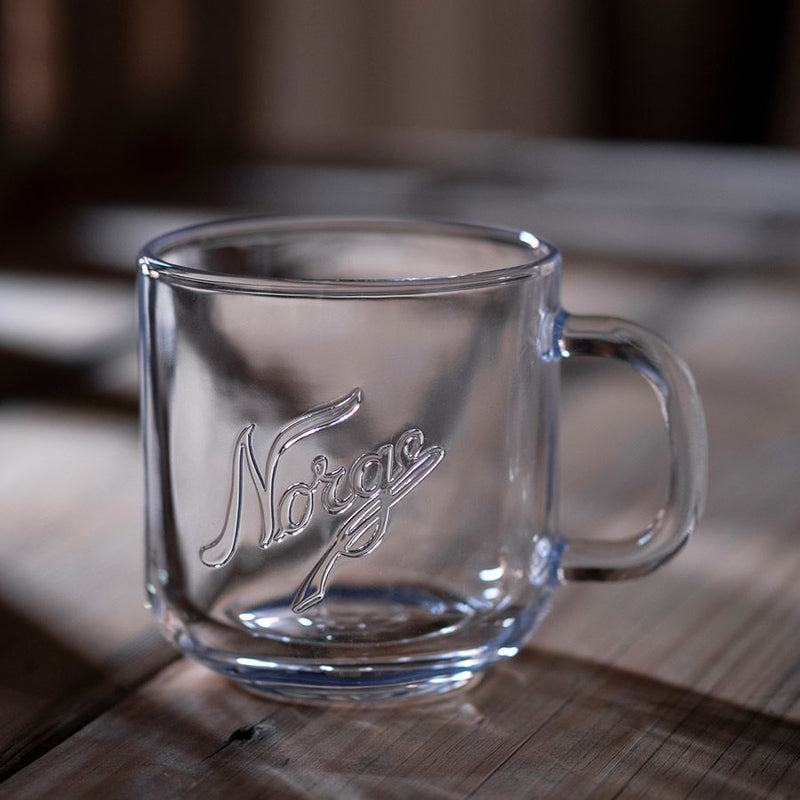 Kopper med design fra Norgesglassets kjente runde bunn. Selvfølgelig med Norge logo, det er solide kopper som er gode å holde og å drikke av. Koppen rommer 2,5dl