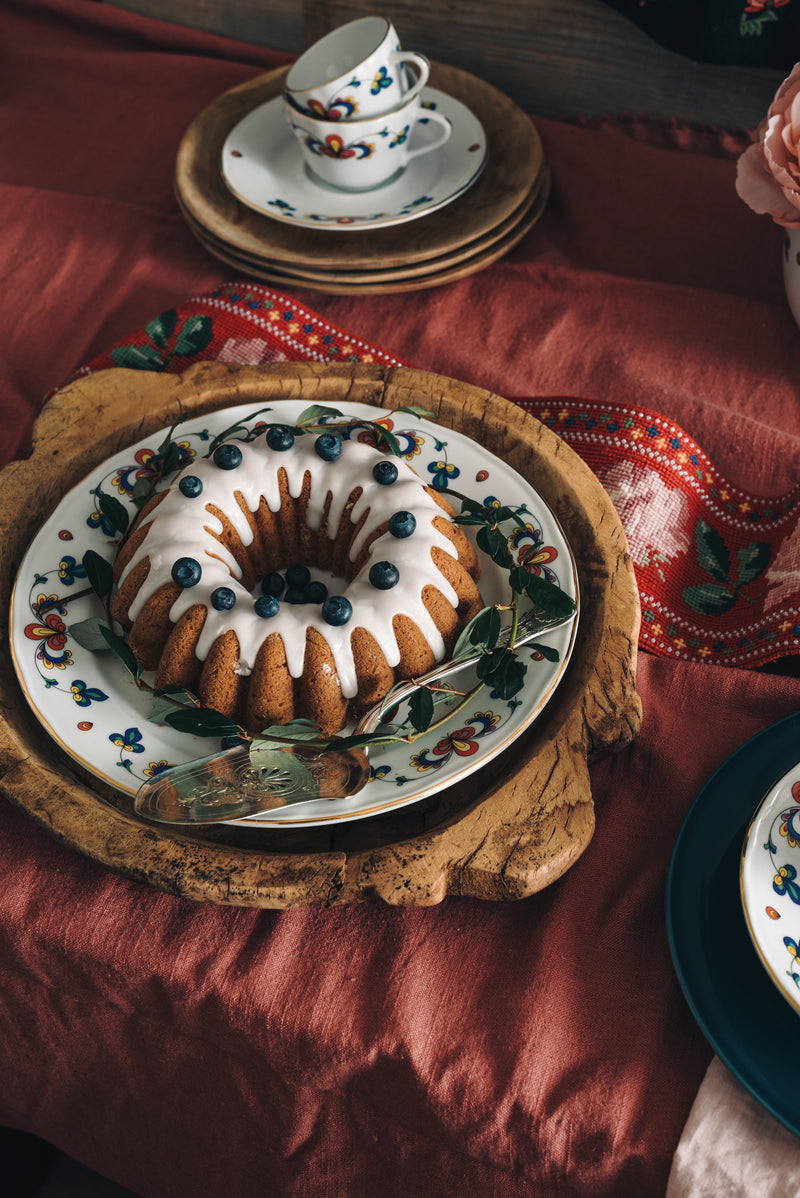 Bondemønster ble lansert i 1932 og har med tiden fått stadig flere deler. Sammen med Nisseserviset er Bondemønster blant de aller mest tradisjonsrike serviser vi har her i landet. Vi i Porsgrunds Porselen er stolte av å kunne føre denne delen av norsk kulturarv videre. Høybrent feltspatporselen er den porselenskvaliteten Porsgrunds Porselænsfabrik har produsert siden 1887, altså fra begynnelsen. Det høybrent porselenet regnes som den edleste kvaliteten av porselen og kjennetegnes ved at det er gjennomskinnelig hvitt med en klar glansfull glasur. Høybrent porselen består kun av rene naturmaterialer, er 100% tett, svært robust og er velegnet til både fest, og hverdagsbruk.