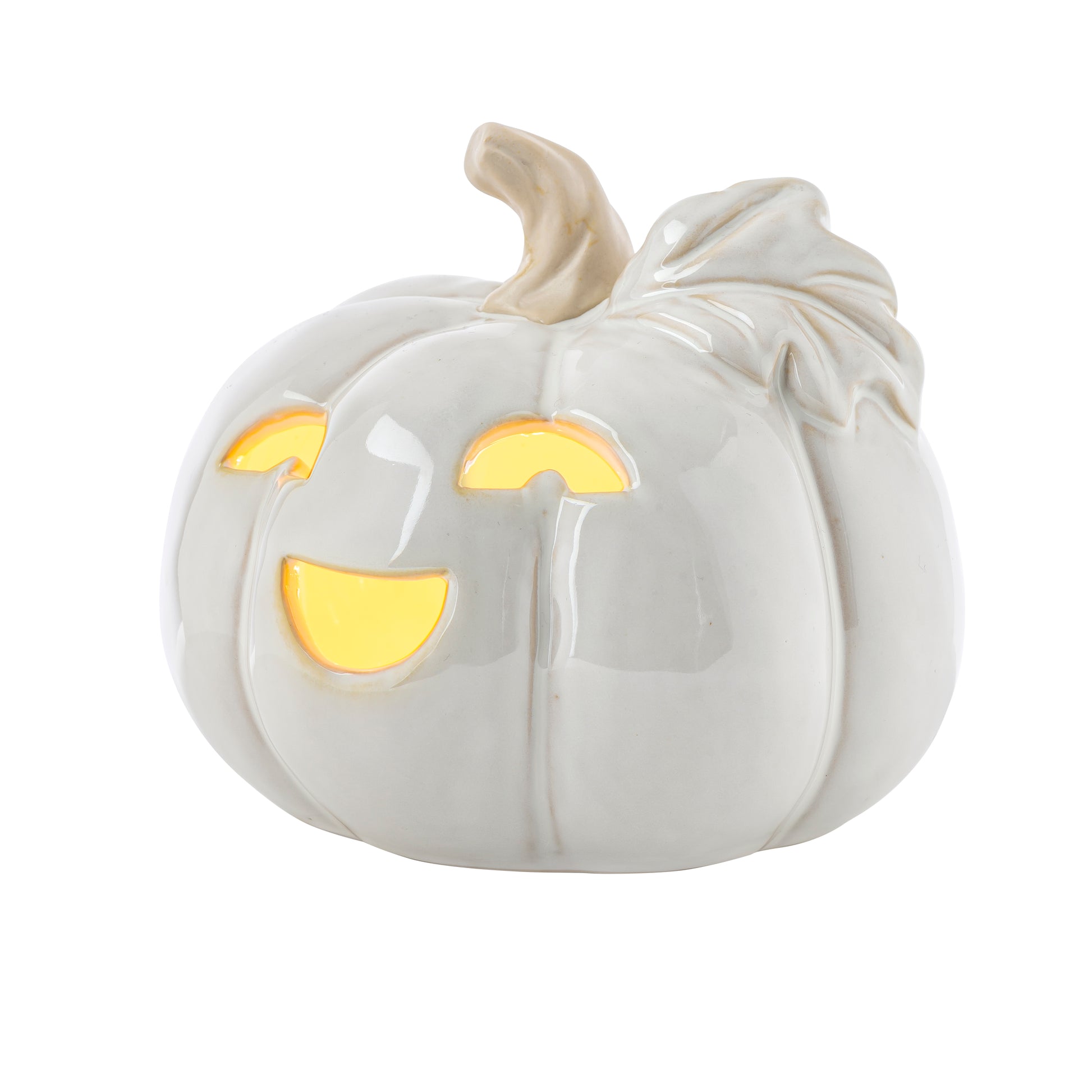 En stemningsfull lyslykt formet som et gresskar i keramikk, 15 x 14,5 cm. Den gir et varmt og koselig lys når du setter et telys eller LED-lys inni, og blir en naturlig del av høstens interiør og borddekking.