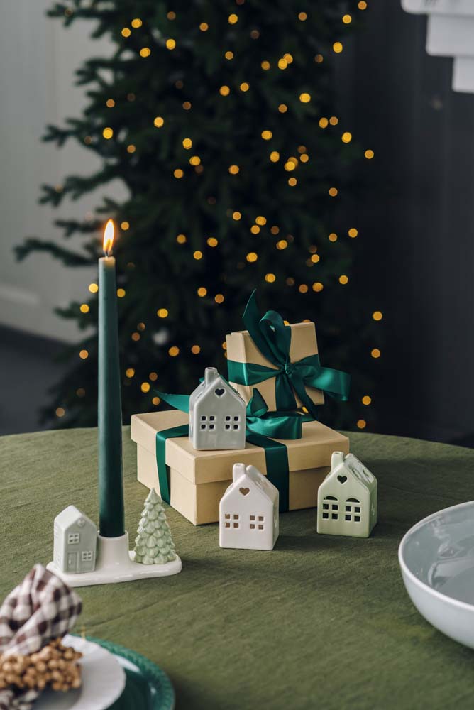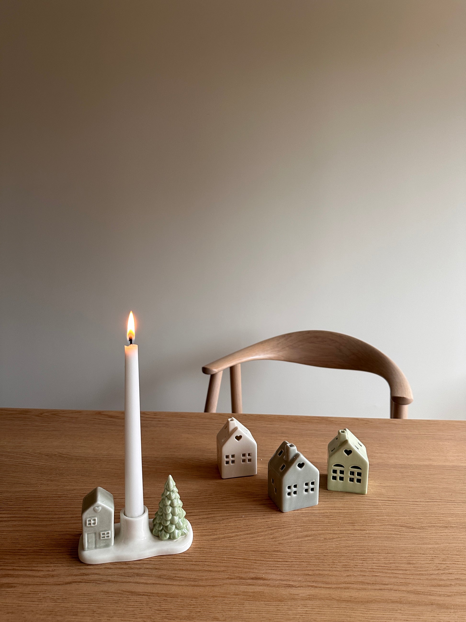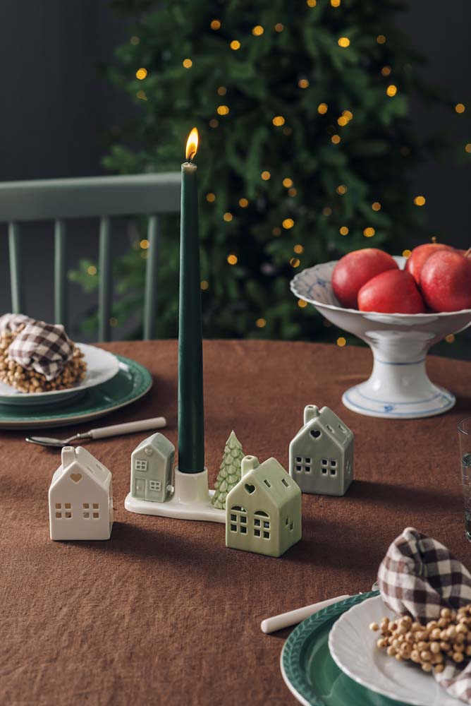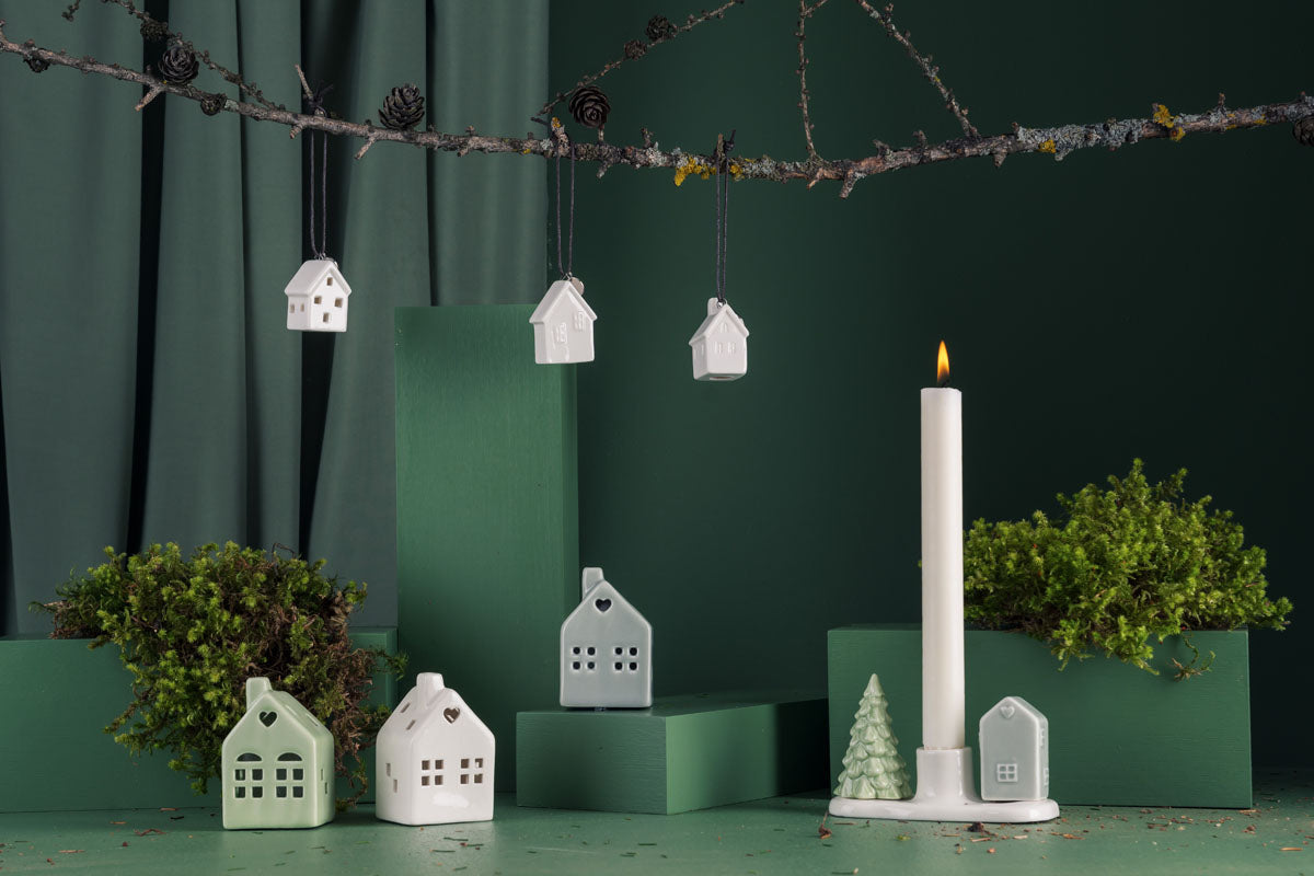 1 stk lysestake porselen hus og tre