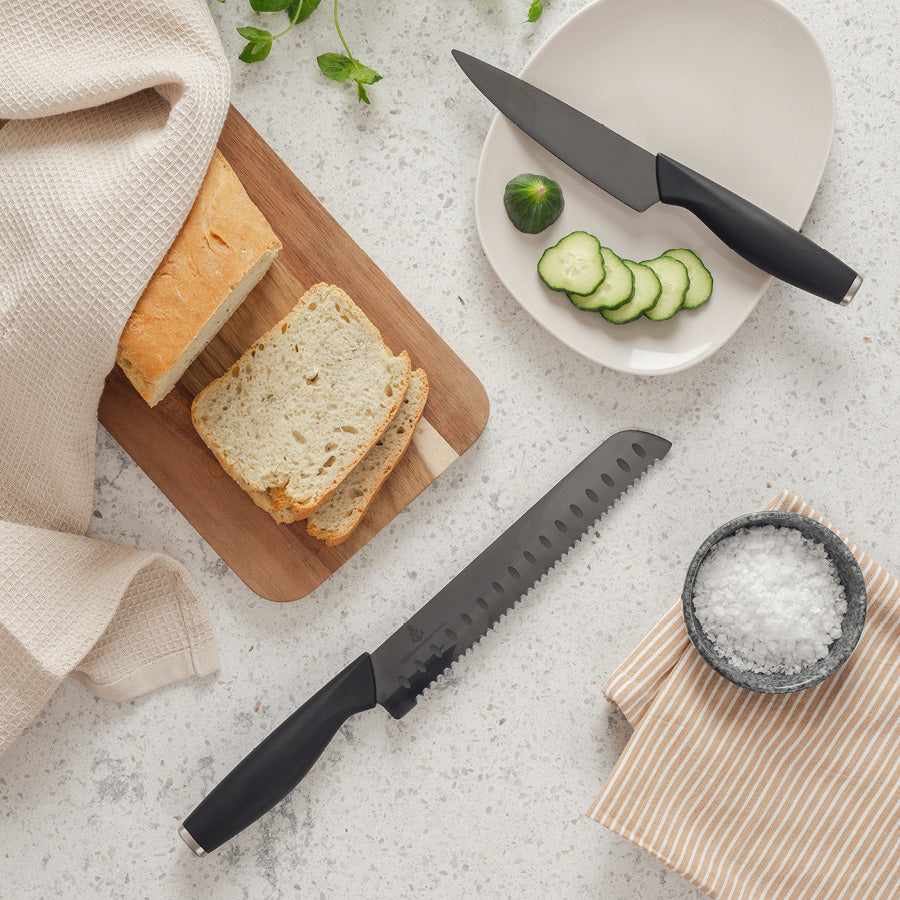 GRØNNSAKSKNIV 13 CM SORT KNIVBLAD