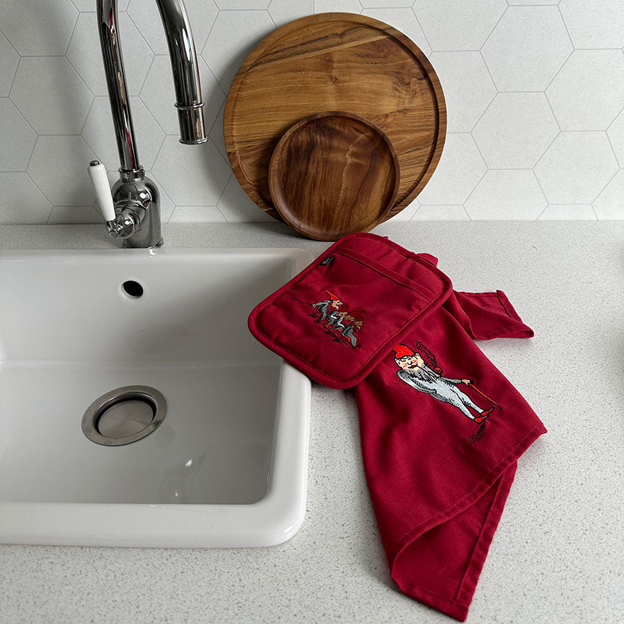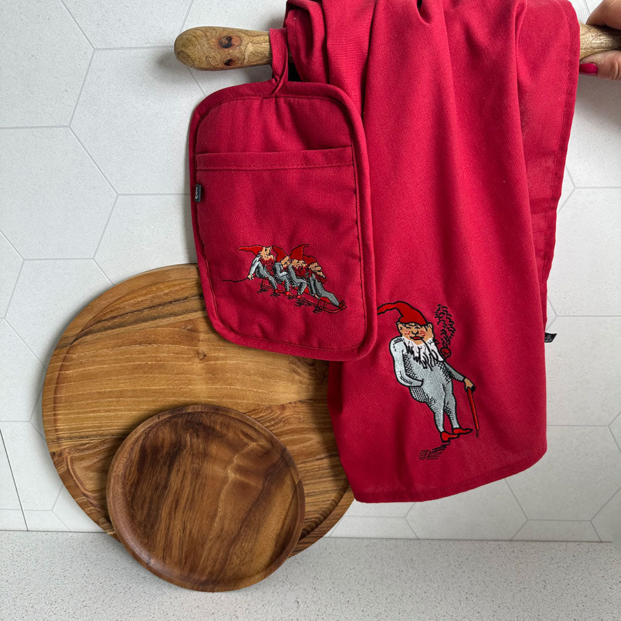 Få julestemning også på kjøkkenet med denne koselige grytekluten på 23 x 18 cm, dekorert med tradisjonelle nisser. Den røde grytekluten bringer festlig glede til matlagingen i julen og kan vaskes i maskin på 30 grader for enkel rengjøring. Kombiner gjerne med matchende kjøkkenhåndklær og andre røde juletekstiler for en gjennomført juledekorasjon på kjøkkenet.