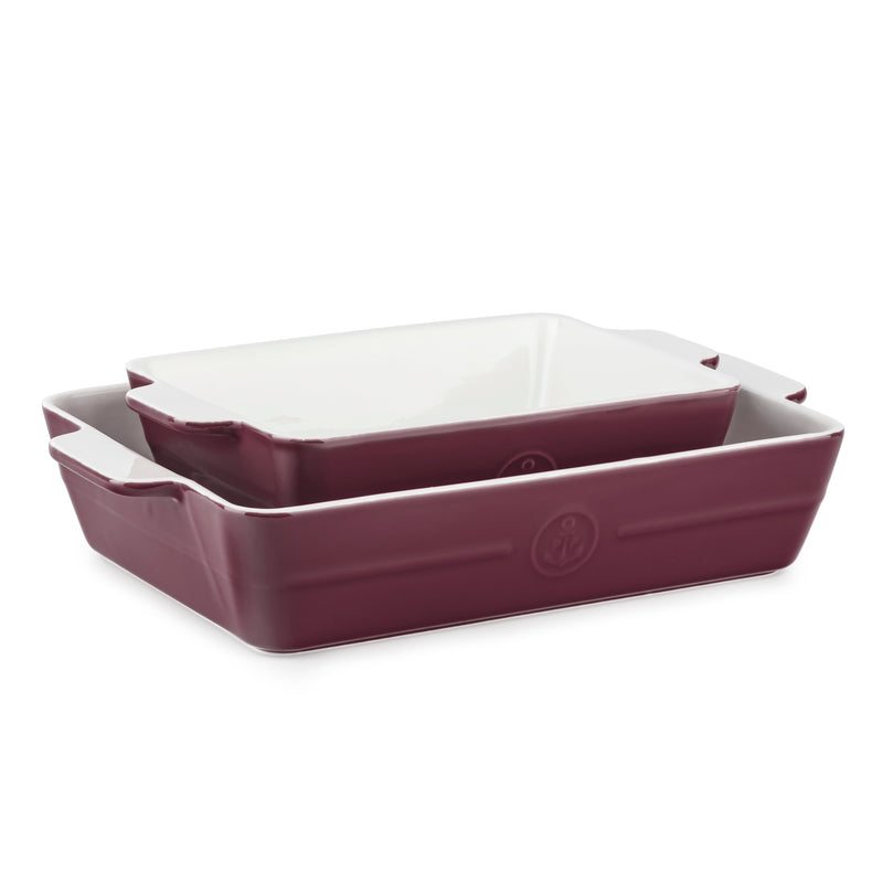 Praktisk sett med to ildfaste former i nydelig rosso-farge. Størrelsene 27x20 cm og 20x15 cm dekker ulike behov – fra mindre gratenger og desserter til større middagsretter. Perfekt som gave eller som en del av et funksjonelt kjøkken. Laget i solid porselen som tåler ovn, mikro og oppvaskmaskin.