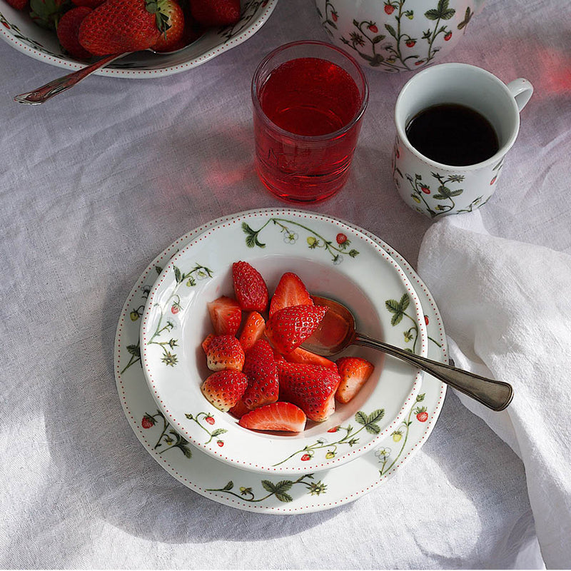 Med denne servisepakken kan du dekke frokostbordet til 2 personer med det flotte serviset Jordbæreng. I denne pakken får du asjetter, krus og skåler.
