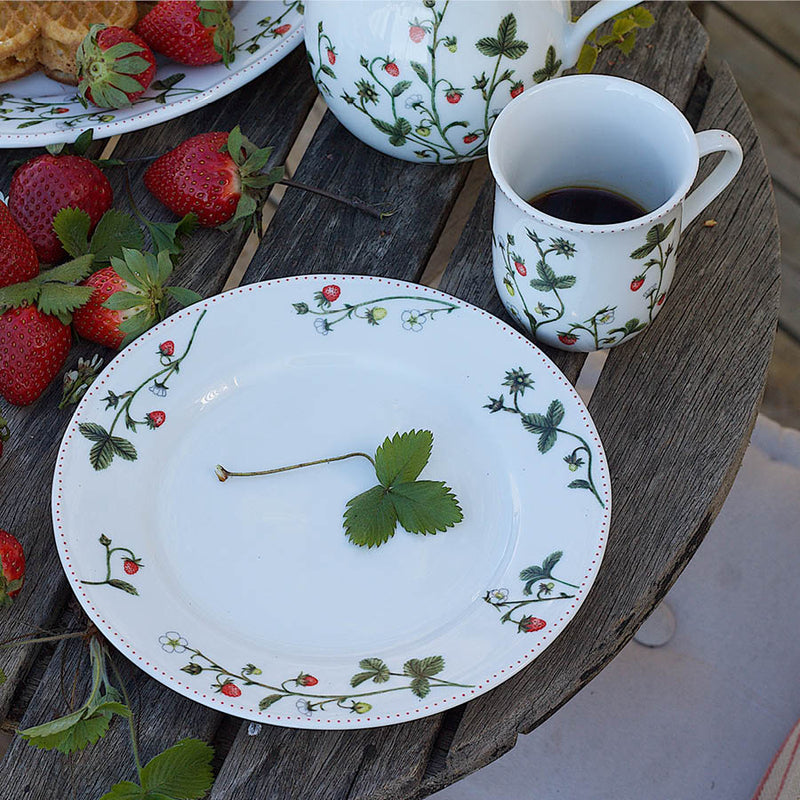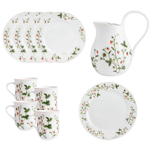 Med denne servisepakken kan du servere kaker og bakst til 4 personer med det flotte serviset Jordbæreng. I denne pakken får du asjetter, krus, mugge og kakefat.