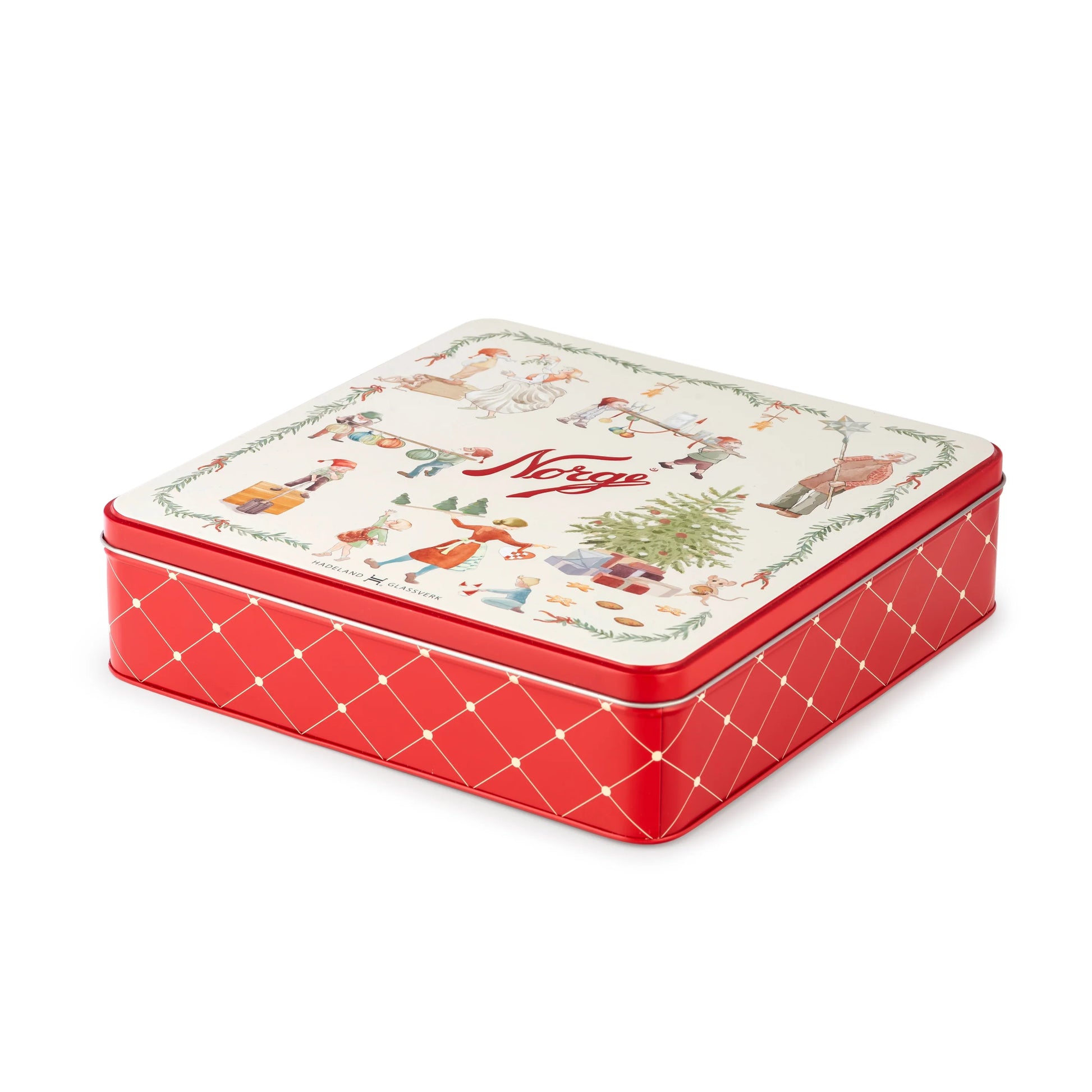 Motivet er skapt av designer Lisbeth Lutnæs, inspirert av nissens juleverksted og de travle dagene i Glasshytta på Hadeland, der Norgesglass en gang ble til. En sjarmerende boks som sprer ekte julestemning – også lenge etter at kakene er spist opp.