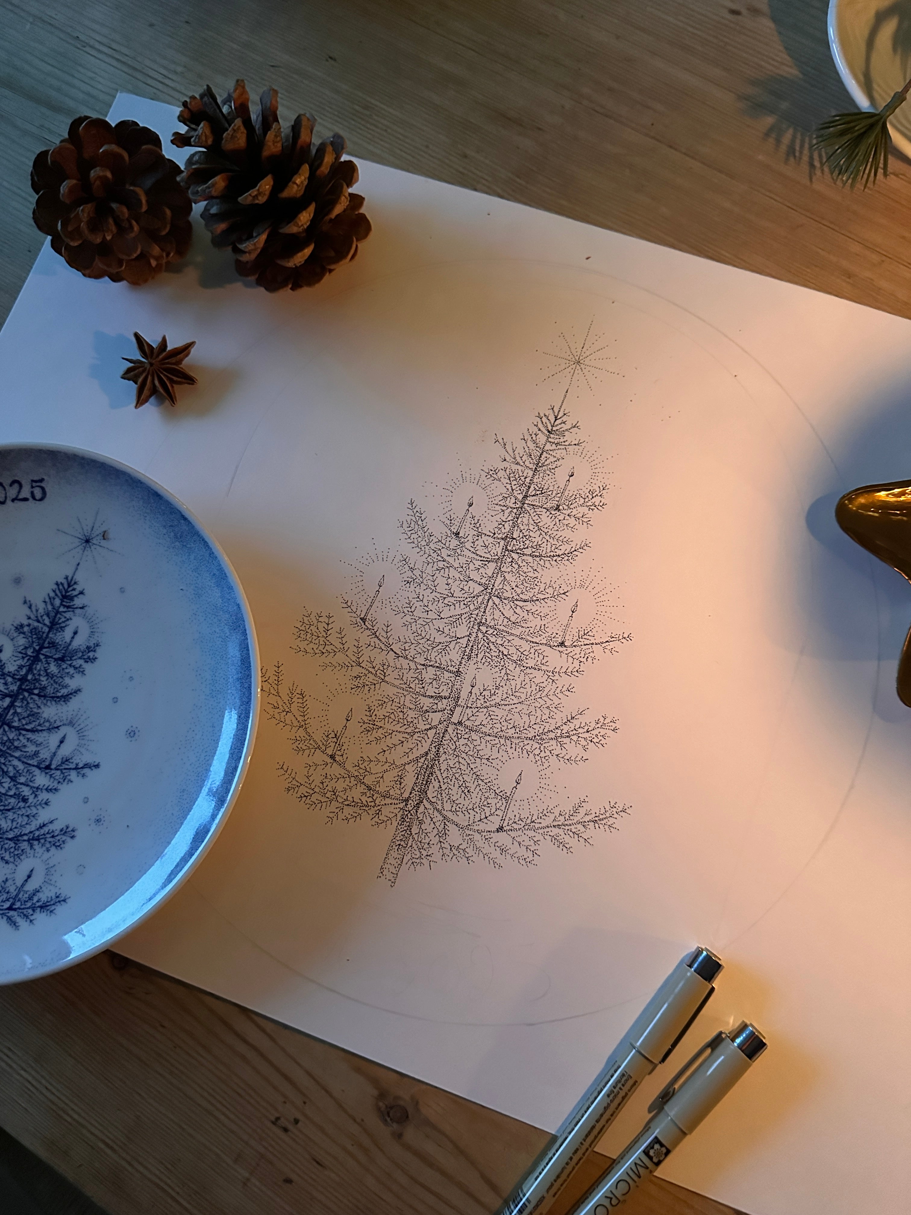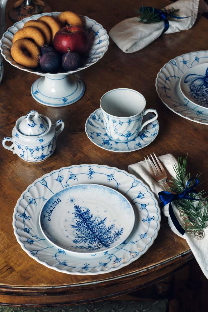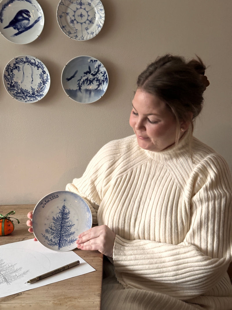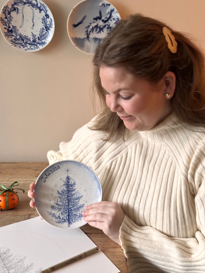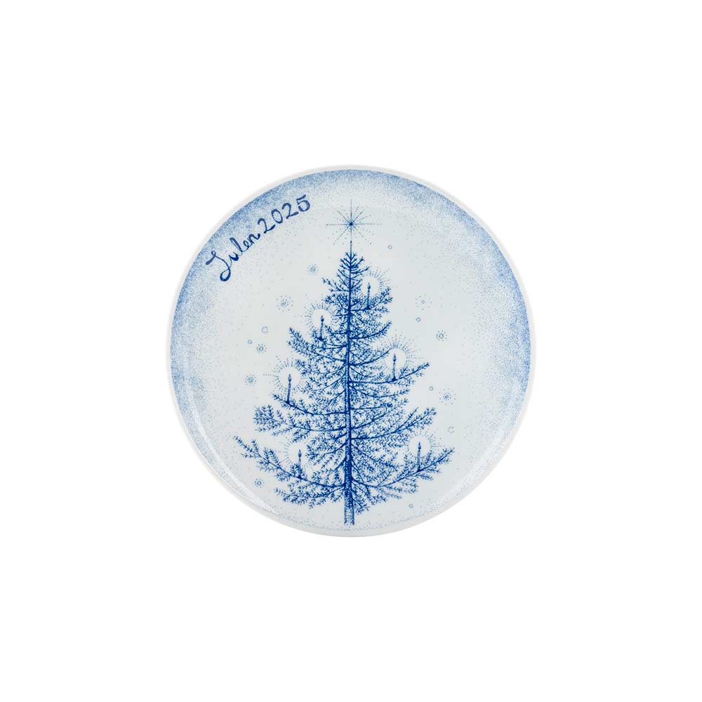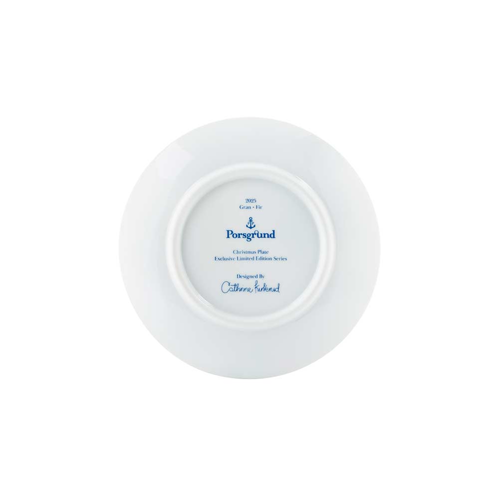 Årets juleplatte fra Porsgrunds Porselænsfabrik er viet til juletreet – et eviggrønt symbol på liv, fred og håp. Med sine dype grønntoner og ranke silhuett har granen i generasjoner samlet familie og venner i lys, varme og forventning. På Juleplatte 2025 er motivet gjengitt med varsom hånd og tidløs eleganse av designer Cathrine Kirkerud, som siden 2021 har preget serien med sitt botaniske uttrykk.